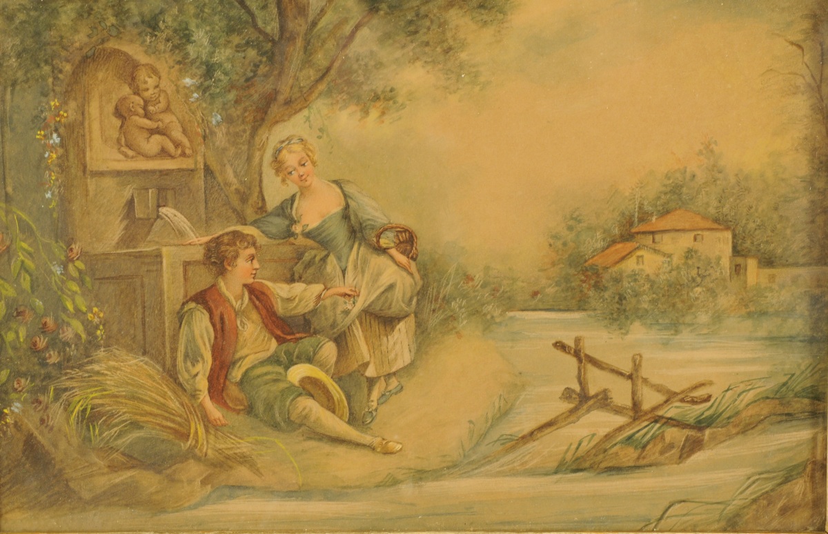 Scène galante à la fontaine.