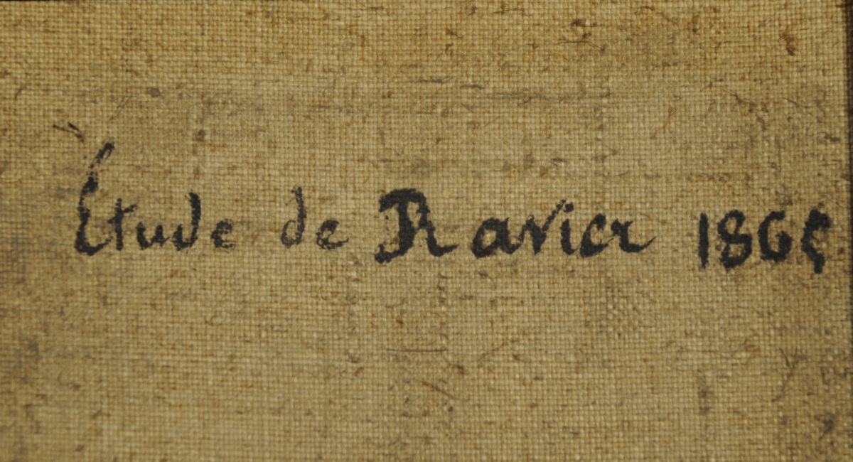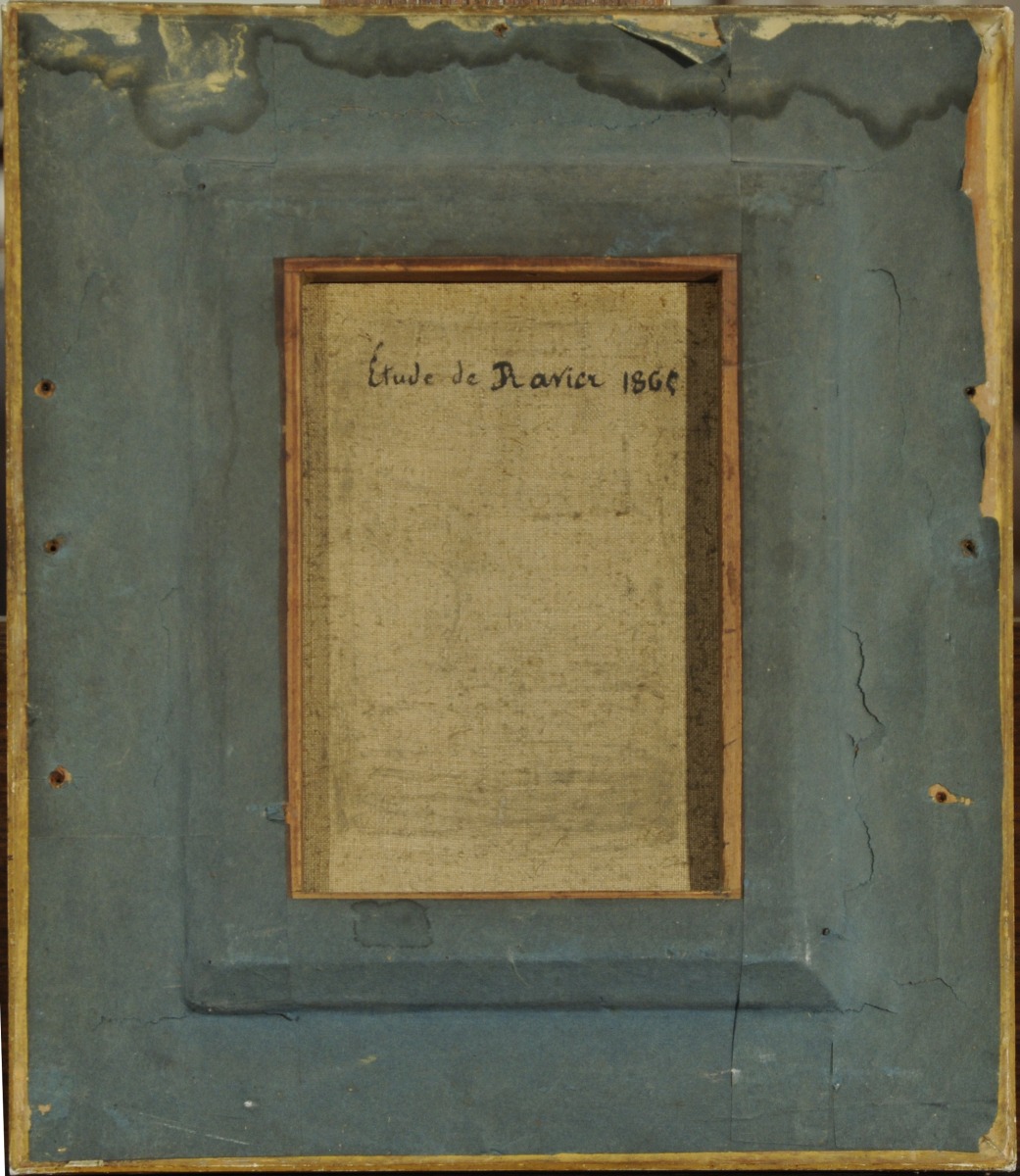 Huile sur toile, datée "1864" et marquée "Étude de Ravier" au dos.