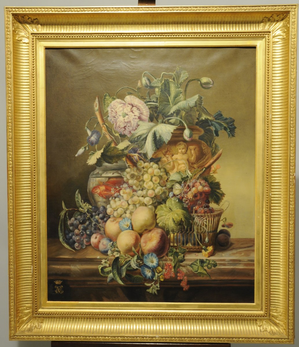 Paire d'huiles sur toile, monogramme couronné en bas à gauche.