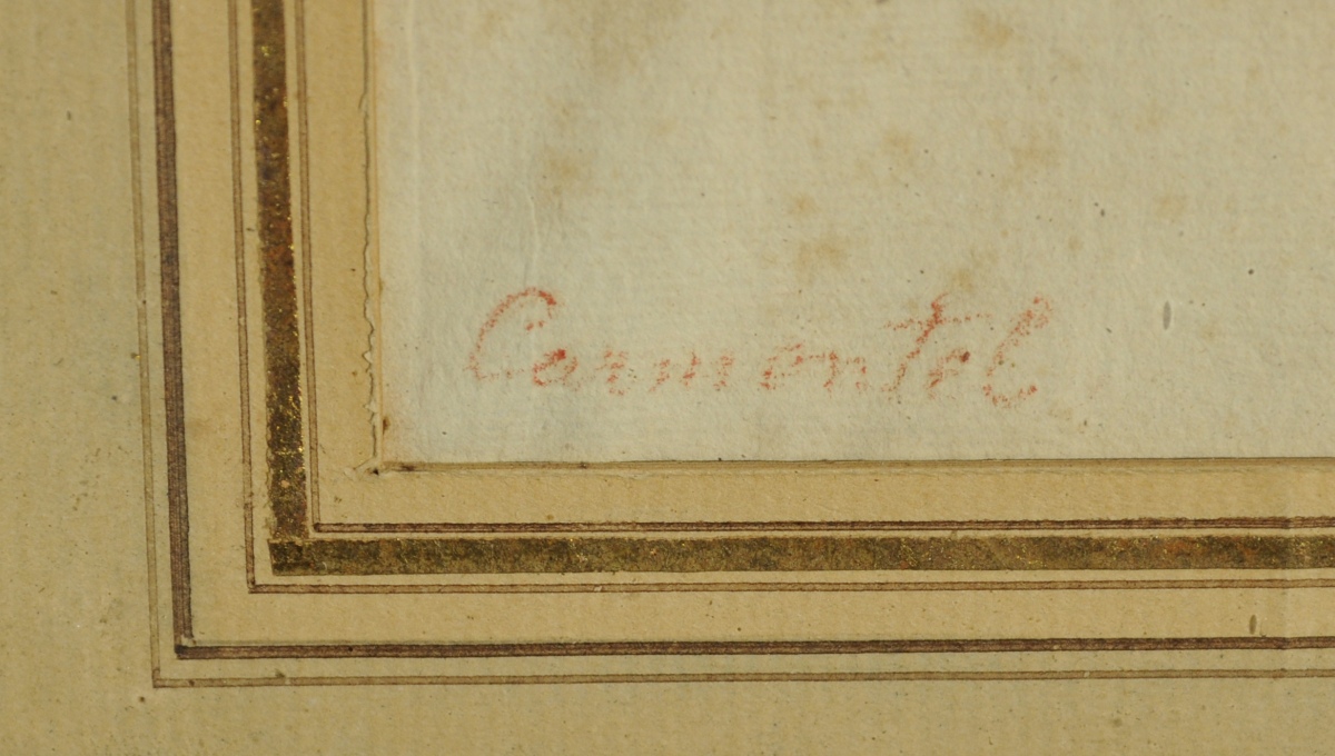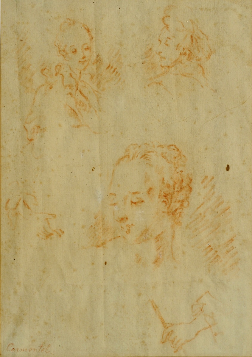 Sanguine sur papier, signature apocryphe "Carmontel" en bas à gauche.