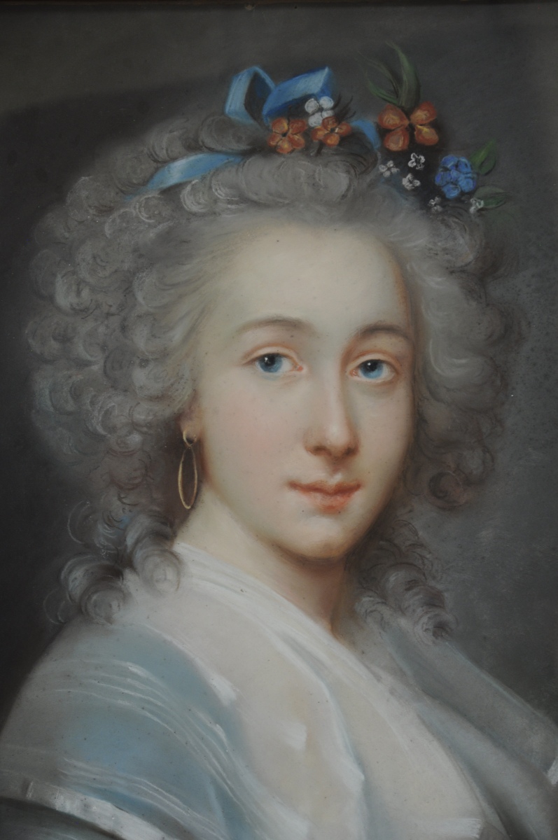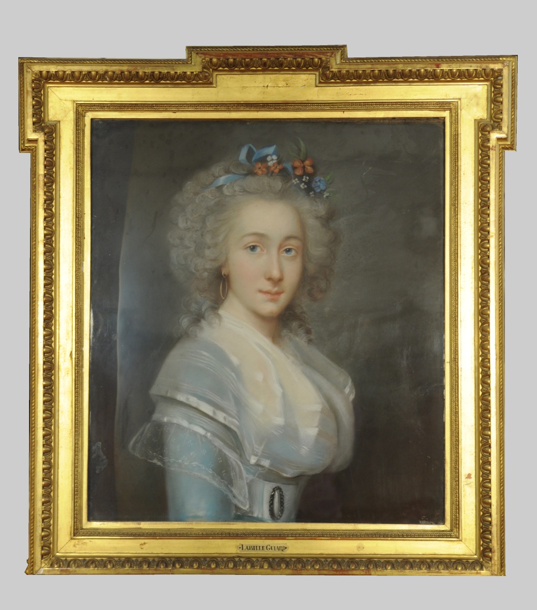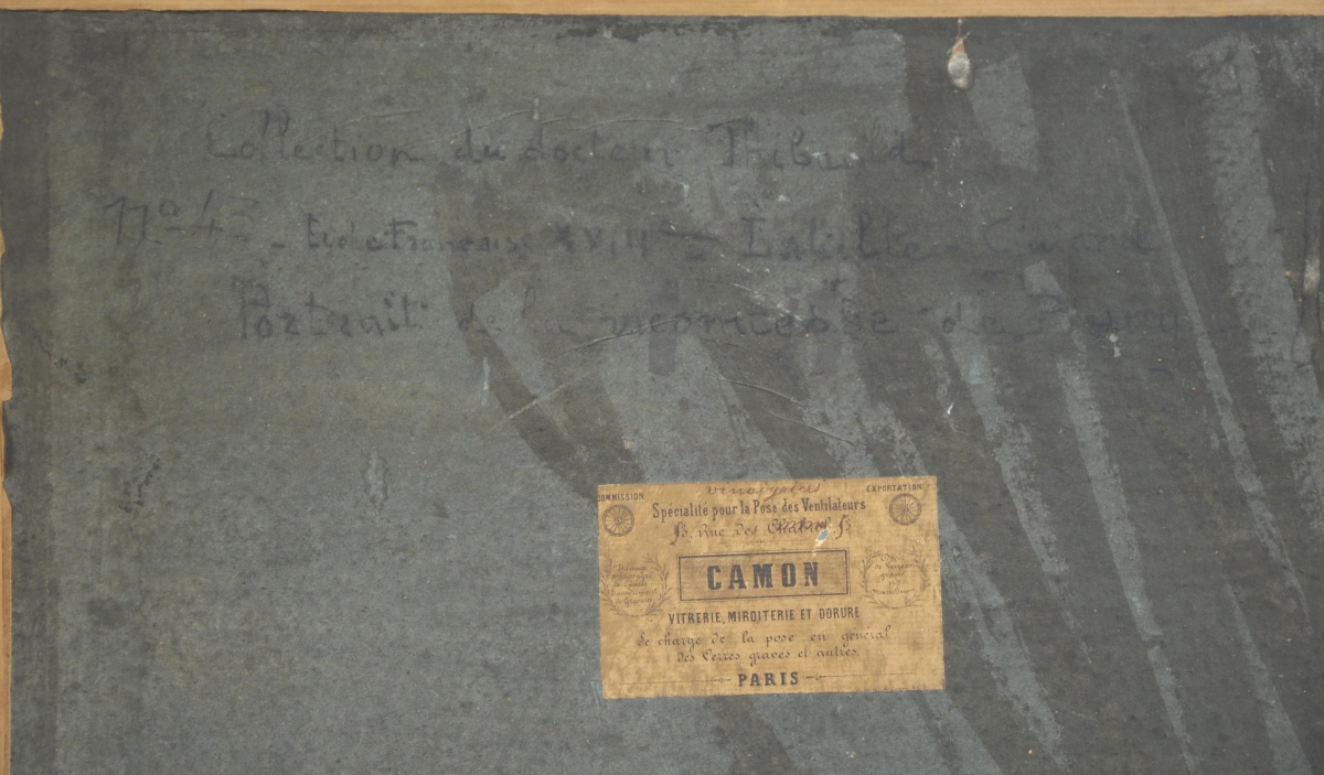 Inscription manuscrite au dos: "Collection du docteur du docteut Thibaud N°112 43 / École française du XVIIIème, Labille-Guiard / Portrait de la vicontesse de Barry".
