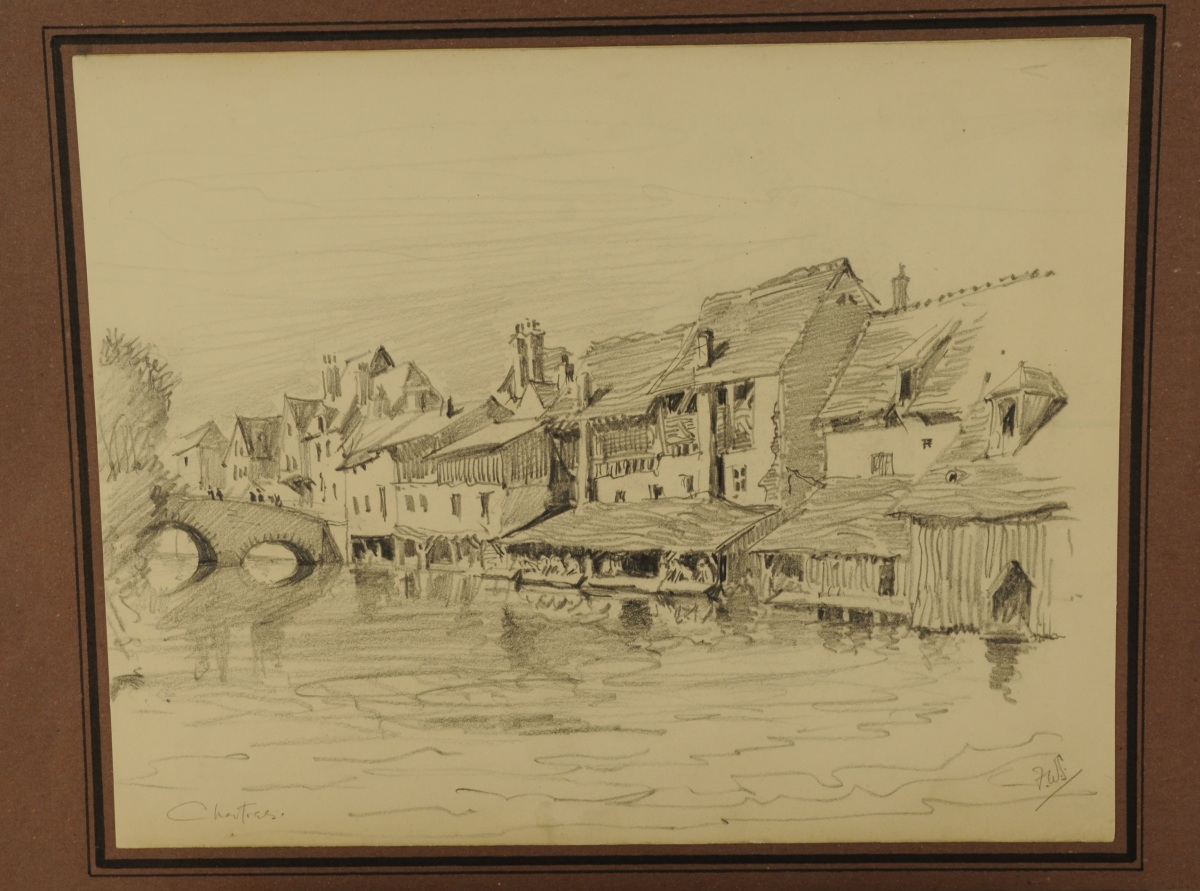 - " Chartres ". Crayon, signé en bas à droite et titré en bas à gauche. 25,5 x 32,3 cm.