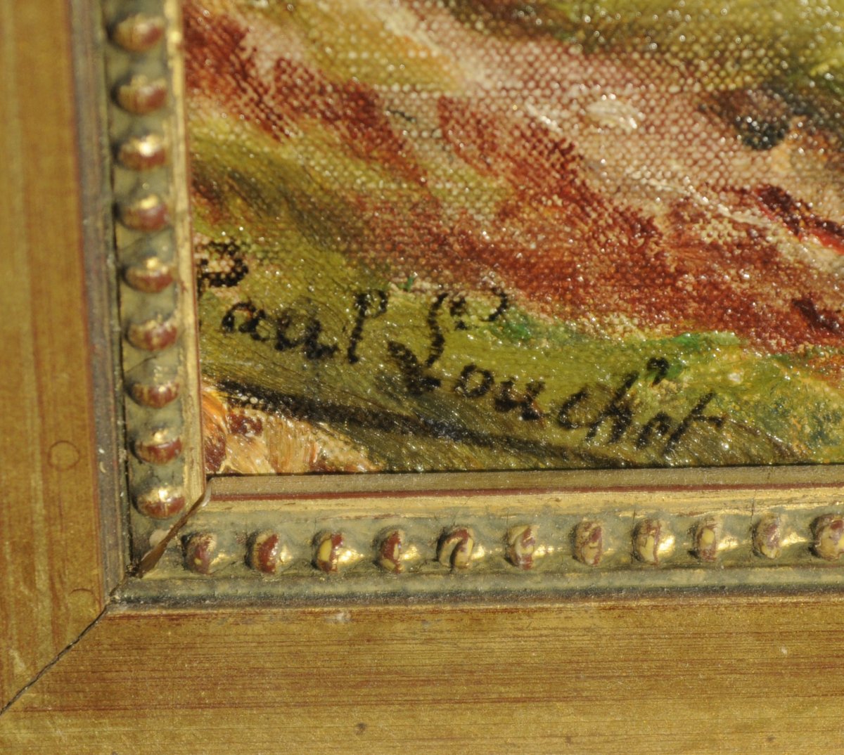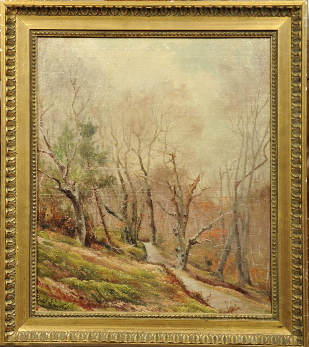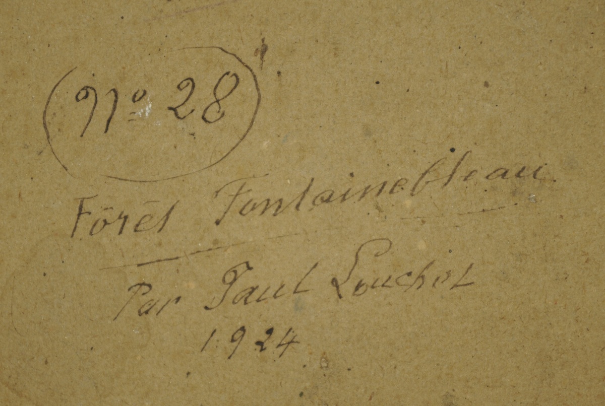 Huile sur toile marouflée sur carton, signée en bas à gauche. Au dos, inscription manuscrite à l'encre: "N°28 / Forêt Fontainebleau / par Paul Louchet / 1924".