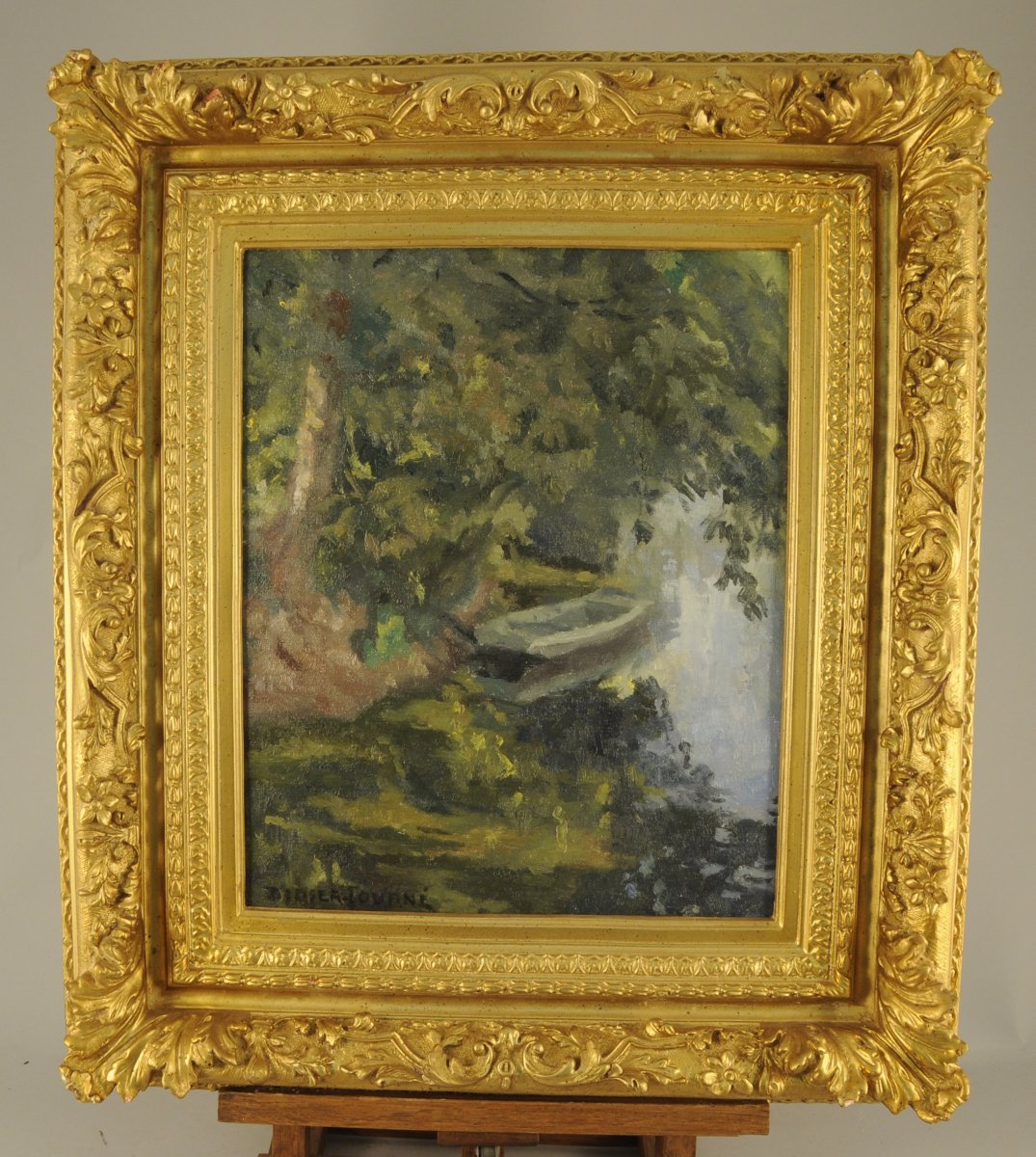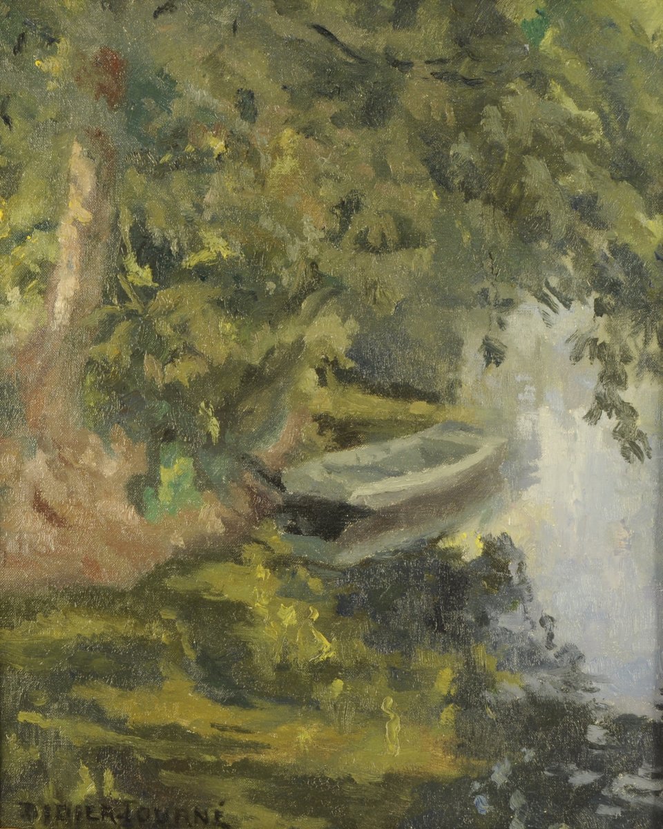 "Le bateau dans la verdure".