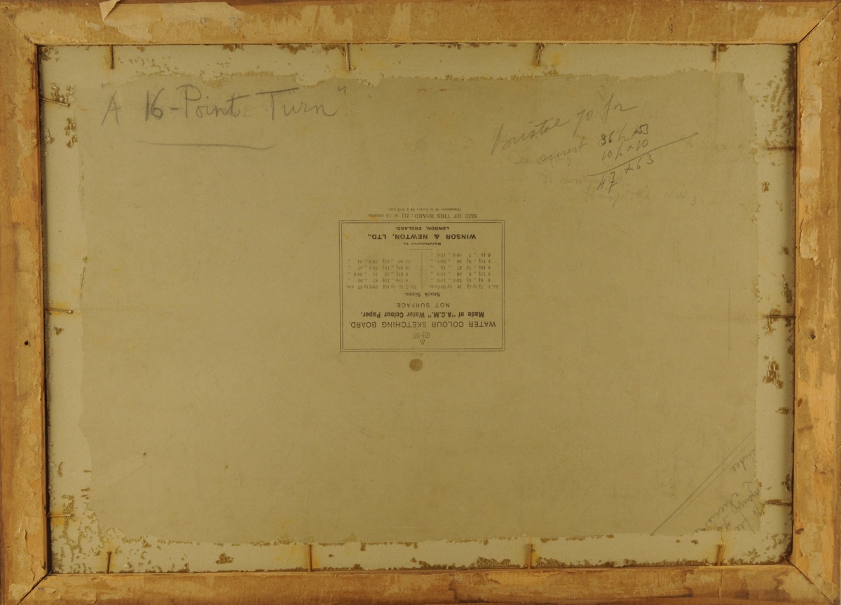 Aquarelle, signée, titrée, dédicacée " To my old friend Bernard Lachèvre " et datée " 1925 " en bas à gauche. Porte une inscription au crayon au dos " A 16 - Point Turn ".
