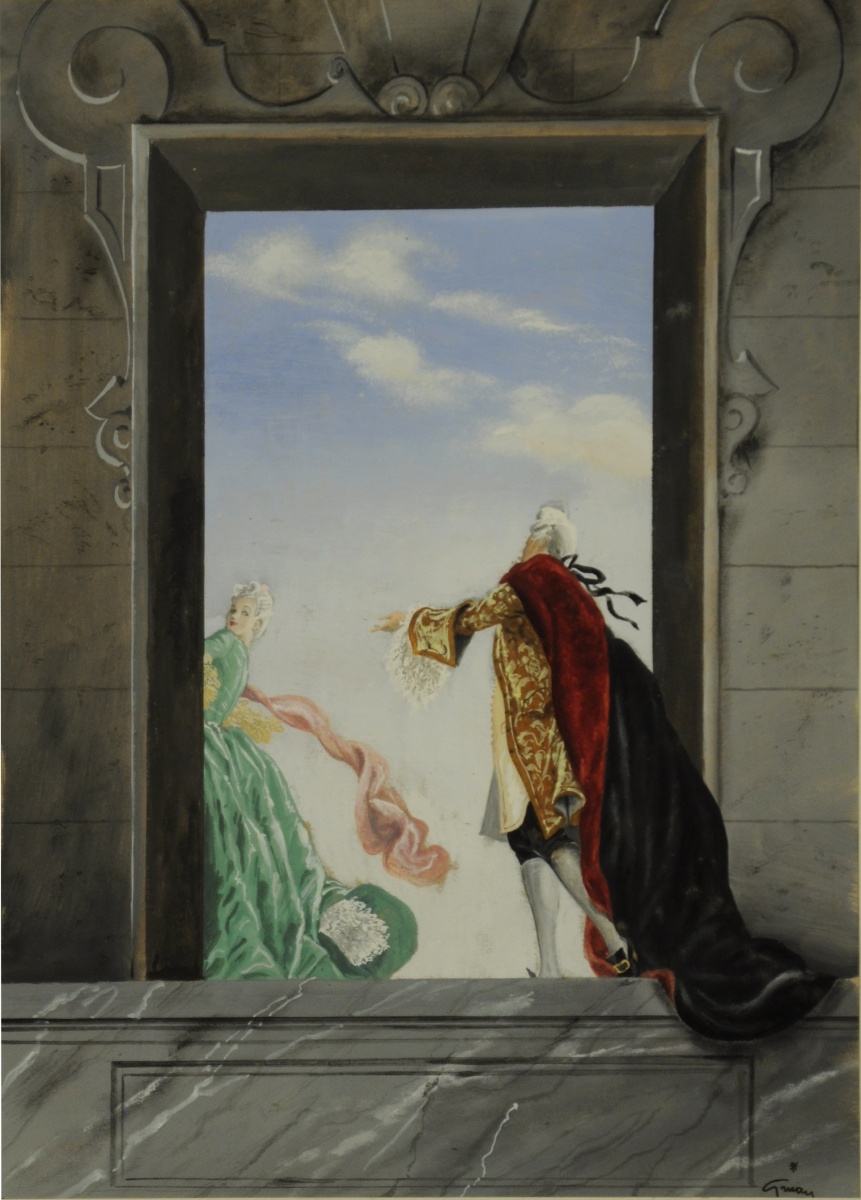 Couple dans le goût du XVIIIème, dans un décor architecturé.