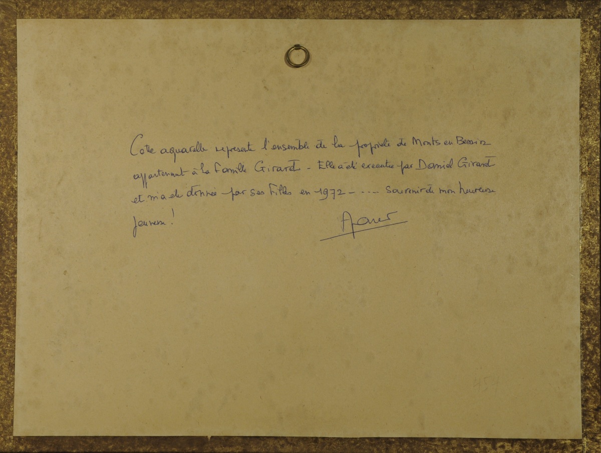 Daniel GIRARD (XXème).Propriété de Monts en Bessin.Aquarelle. 20,5 x 31...