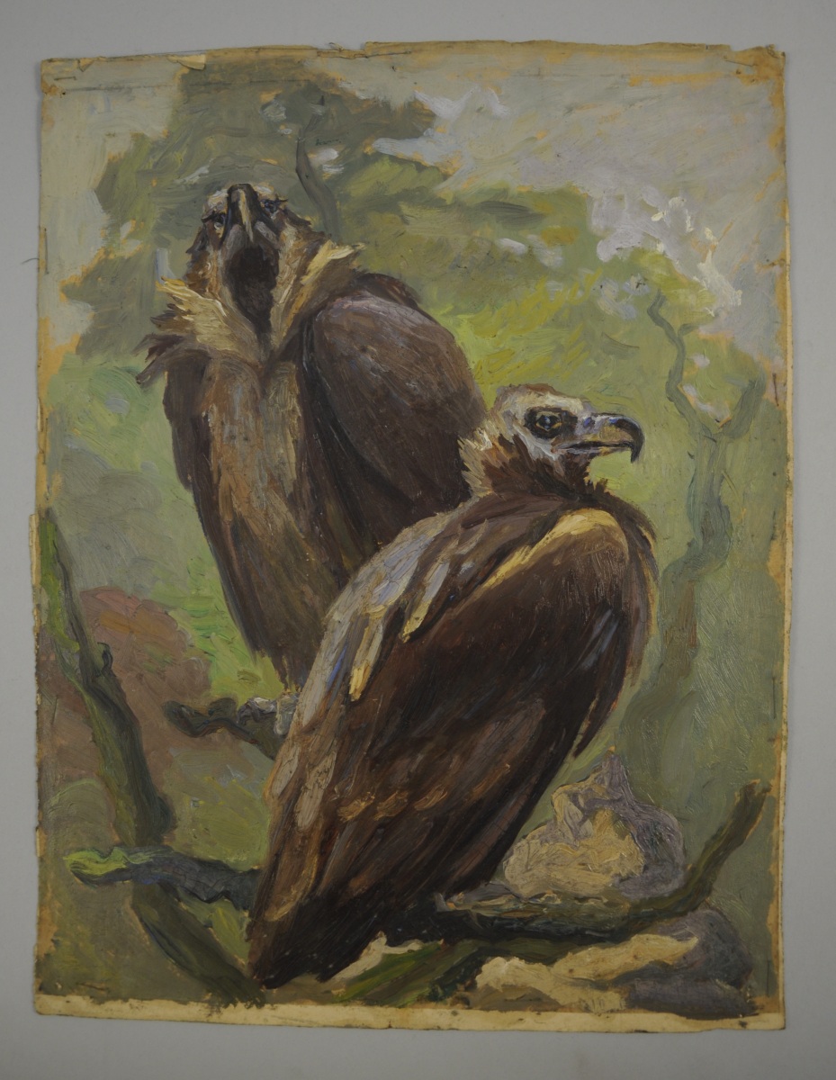 -Vautours. Huile sur papier. 35 x 26,5 cm.