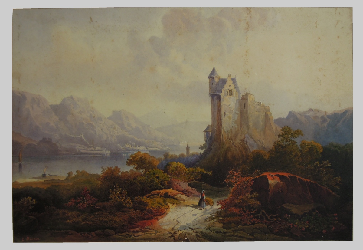 Aquarelle, gouache et pastel, signée en bas à gauche.