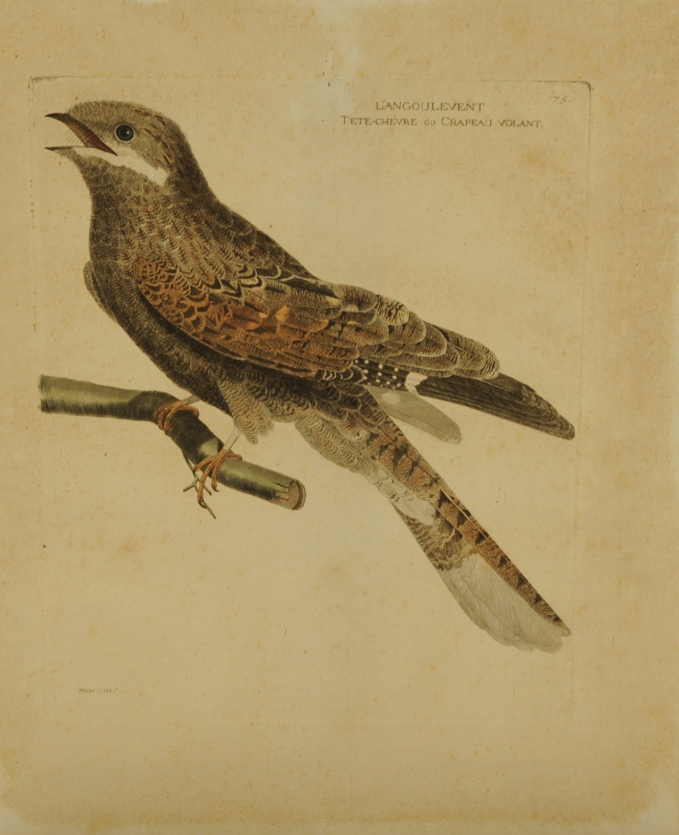 Deux gravures réhaussées en couleur, tirées de l'ouvrage de Buffon, Histoire Naturelle des oiseaux (Imprimerie Royale, 1770-1786?).