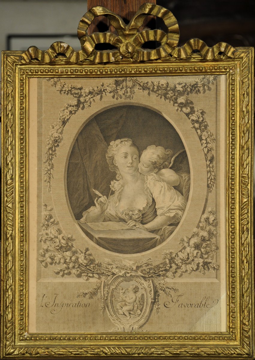 Gravure "Peint par H. Fragonard, Peintre du Roy / À Paris chez l'Auteur, Rue du Fouare Maison de Mr. Maillar, Procureur au Parlement".