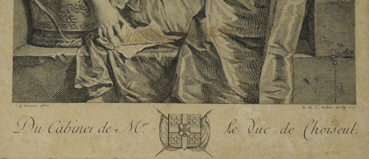 Gravure par Augustin de Saint-Aubin (1736 - 1807) d'après une oeuvre provenant du cabinet de Monseigneur le Duc de Choiseul.