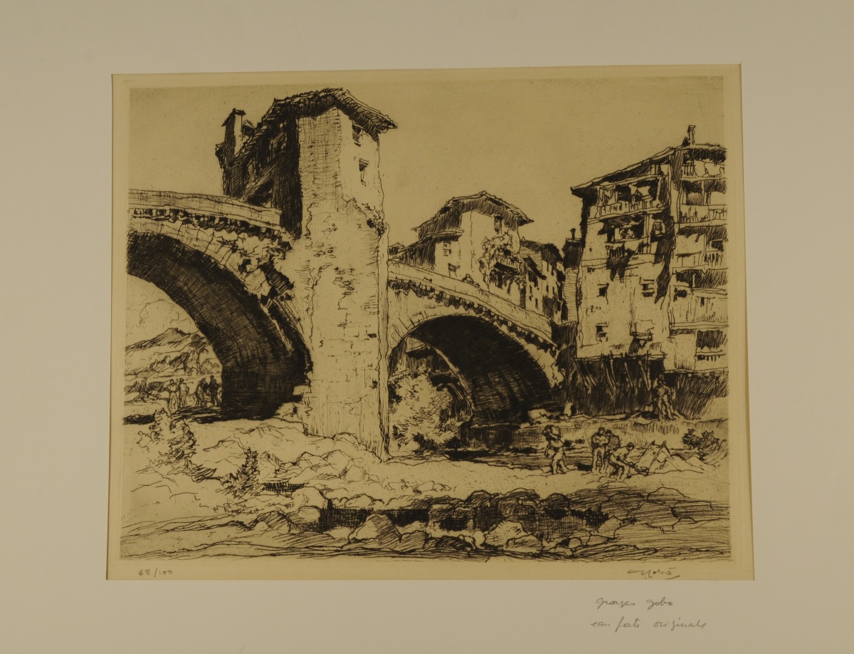 - Pont dans le Midi de la France. Signée en bas à gauche et justifiée 68/100 en bas à droite, dans la marge. 27 x 34 cm.