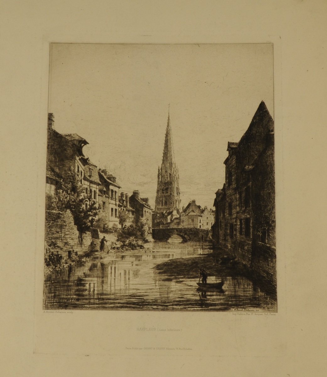 - " HARFLEUR (Seine inférieure) ". Eau-forte, signée en bas à droite dans la planche, en bas à gauche, titrée et numérotée 261, dans la marge. 26,5 x 22 cm.