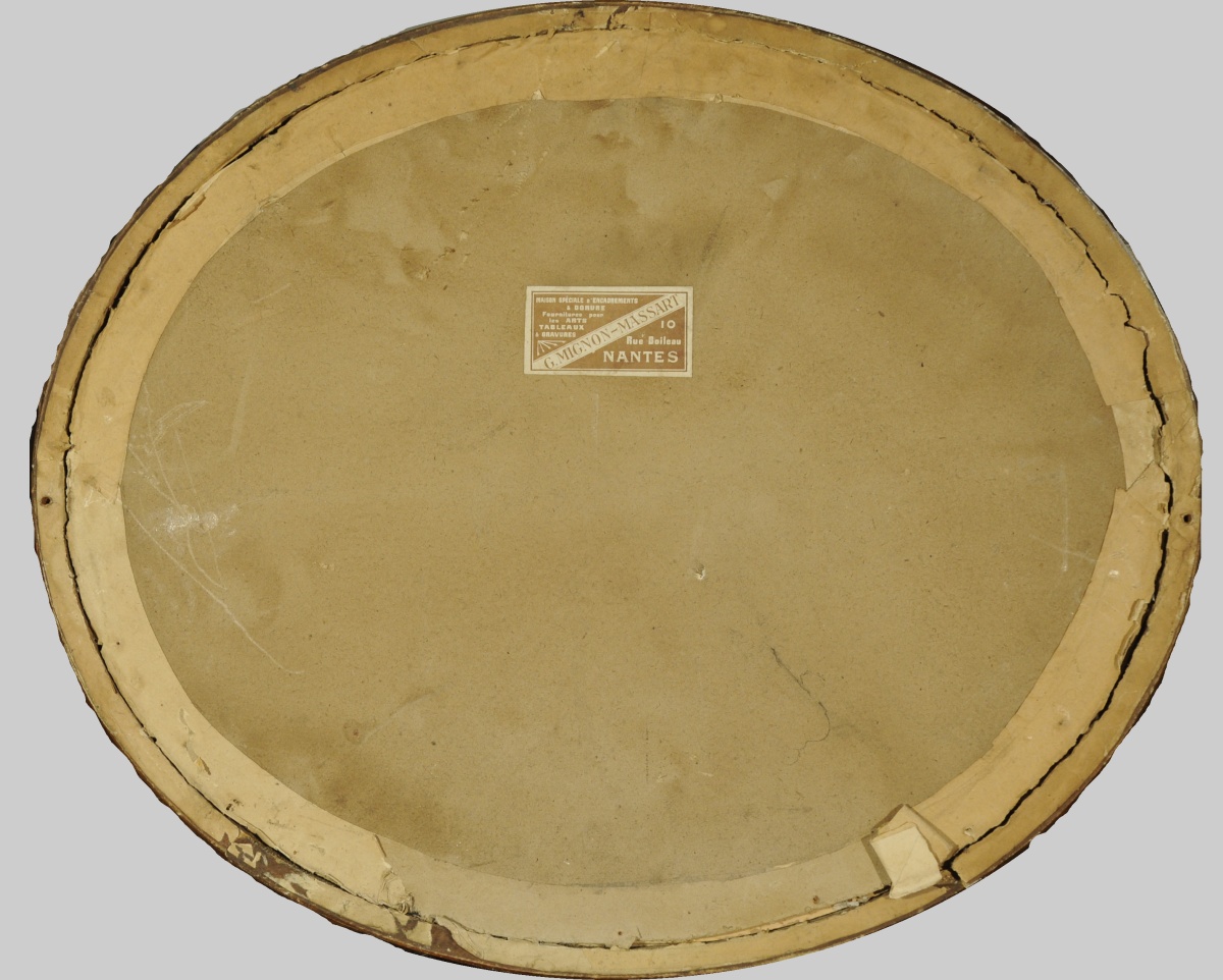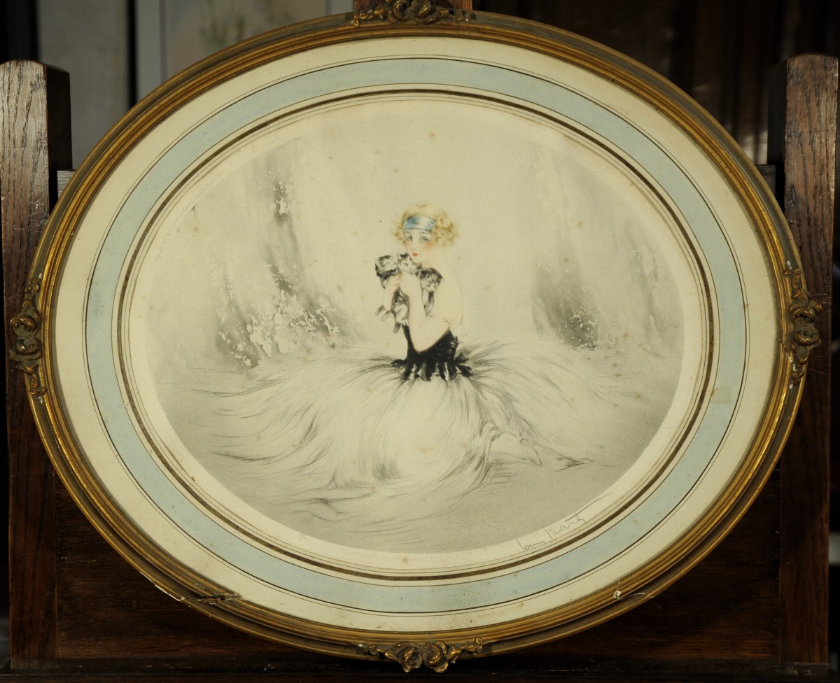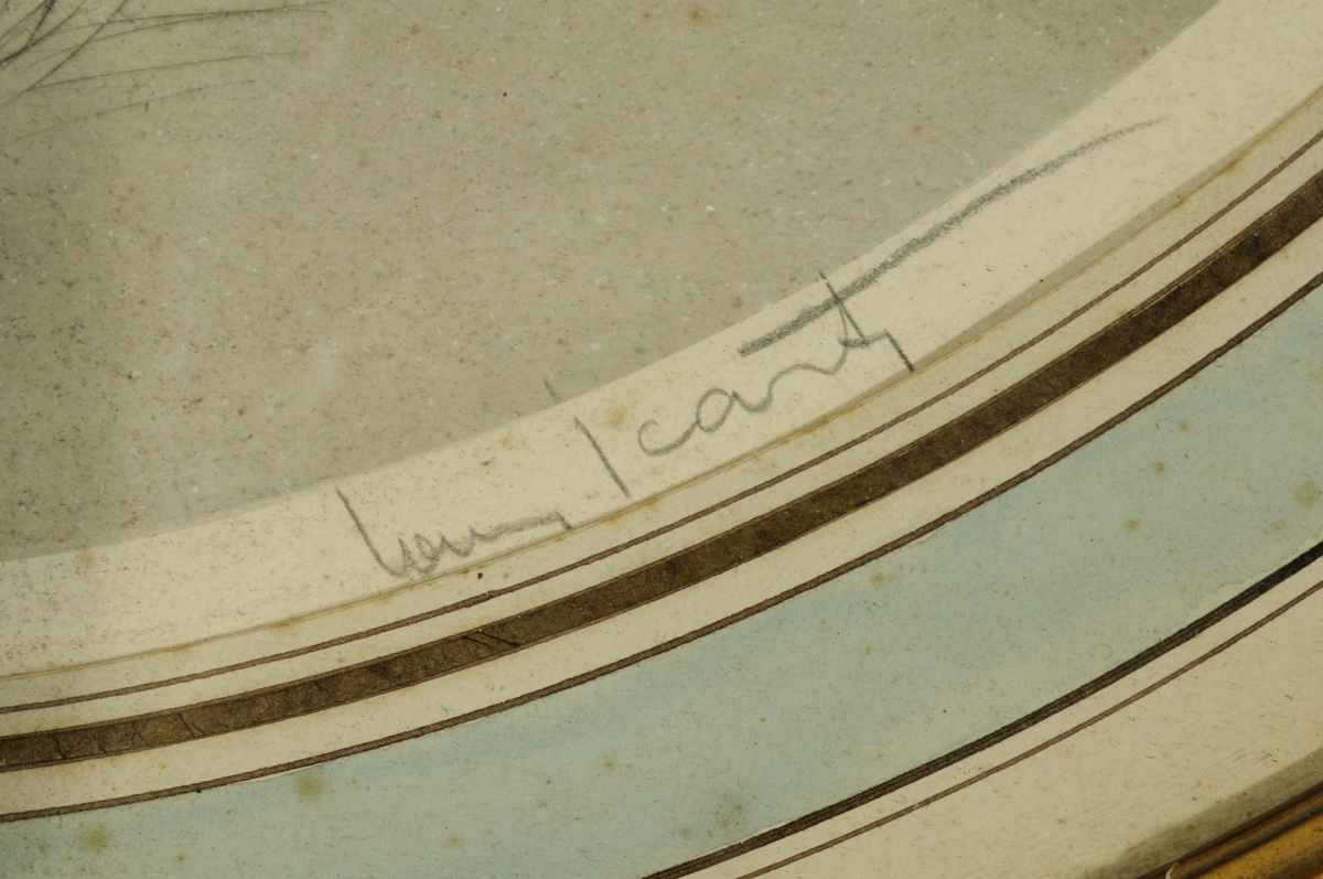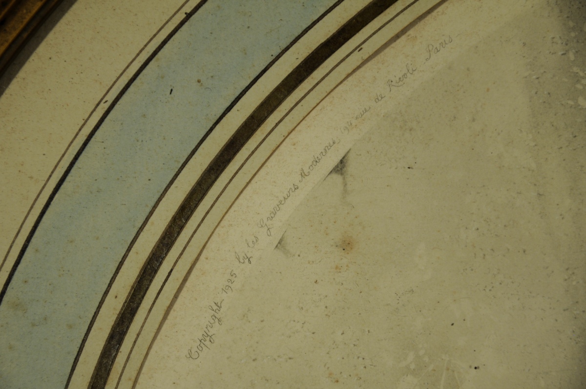 Estampe de forme ovale en couleurs signée en bas à droite.