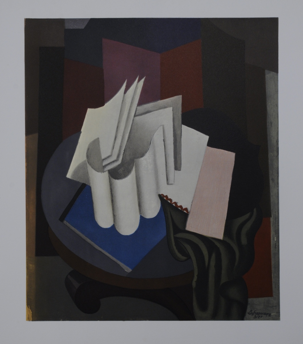 Commande de Camille Renault dérivée de l'affiche de la première Biennale de Peinture à l'Hôtel de Ville de Puteaux du 14 juin au 10 juillet 1966 imprimée par Mourlot d'après la toile "Les feuilles blanches" (Vente Sothebys, Paris, 3 juin 2010, n°78).