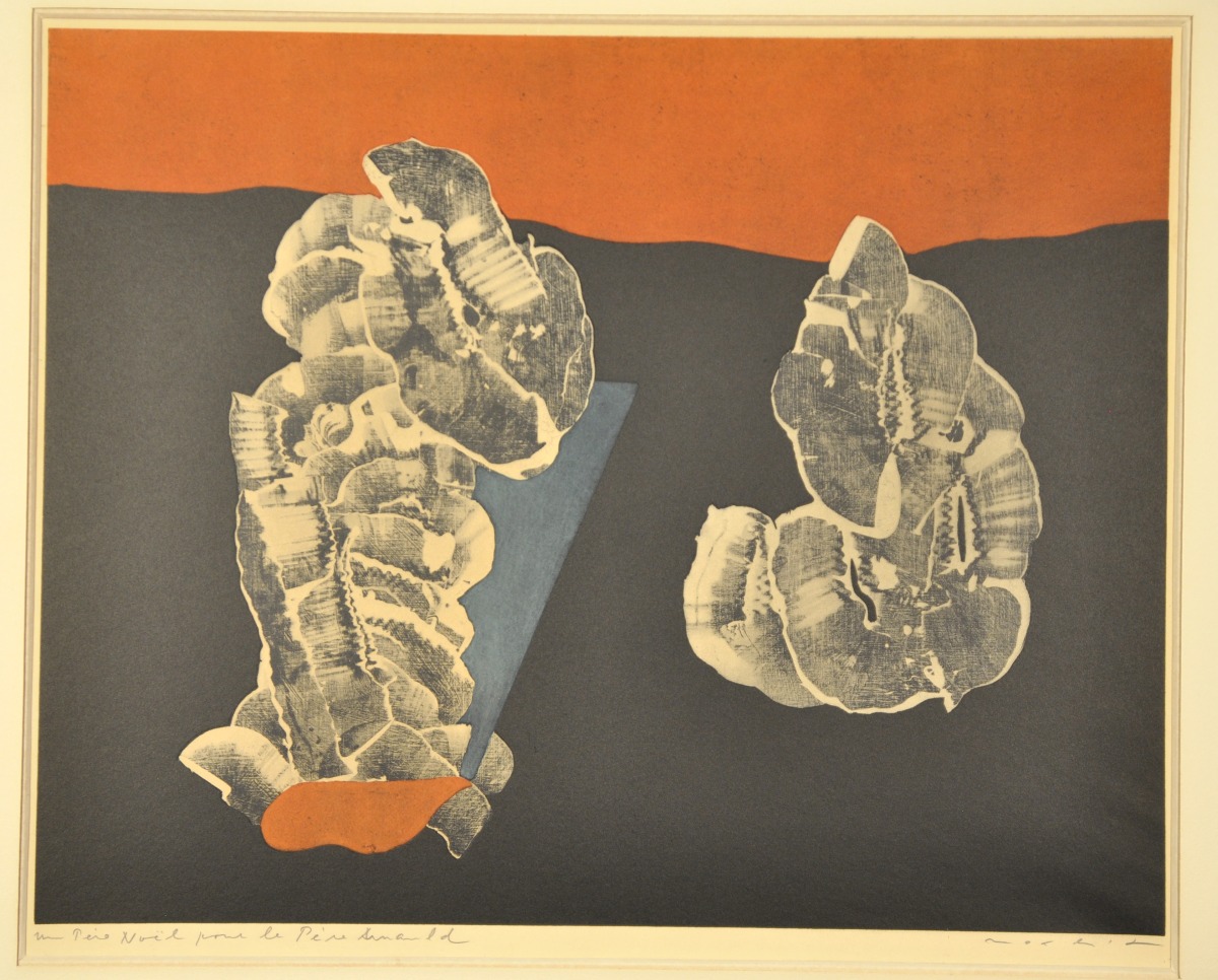 Lithographie dédicacée en bas à gauche: "Un père Noël pour le père Arnauld" et signée en bas à droite.