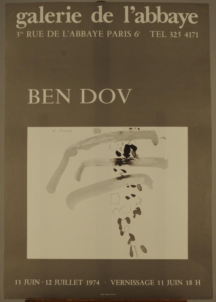 - "BEN DOV, 11 juin - 12 juillet 1974, Galerie de l'abbaye, 3 bis rue de l'abbaye Paris 6e"