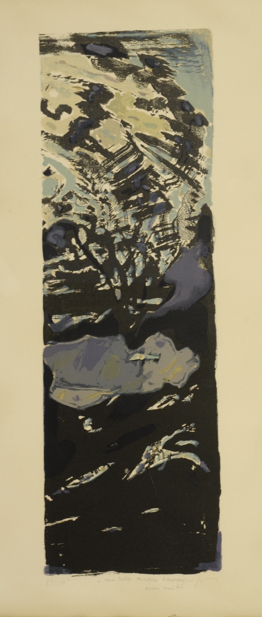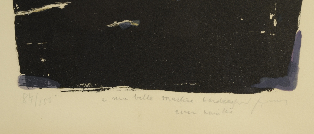 Lithographie en couleurs, numérotée 84/100 en bas à gauche et signée en bas à droite. Porte l'inscription "À ma belle Martine Cadieu avec amitié".