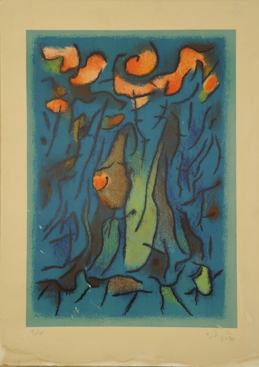 Lithographie en couleurs, signée (illisible) et datée "71"en bas à droite, et justifiée 59/175 en bas à gauche.
