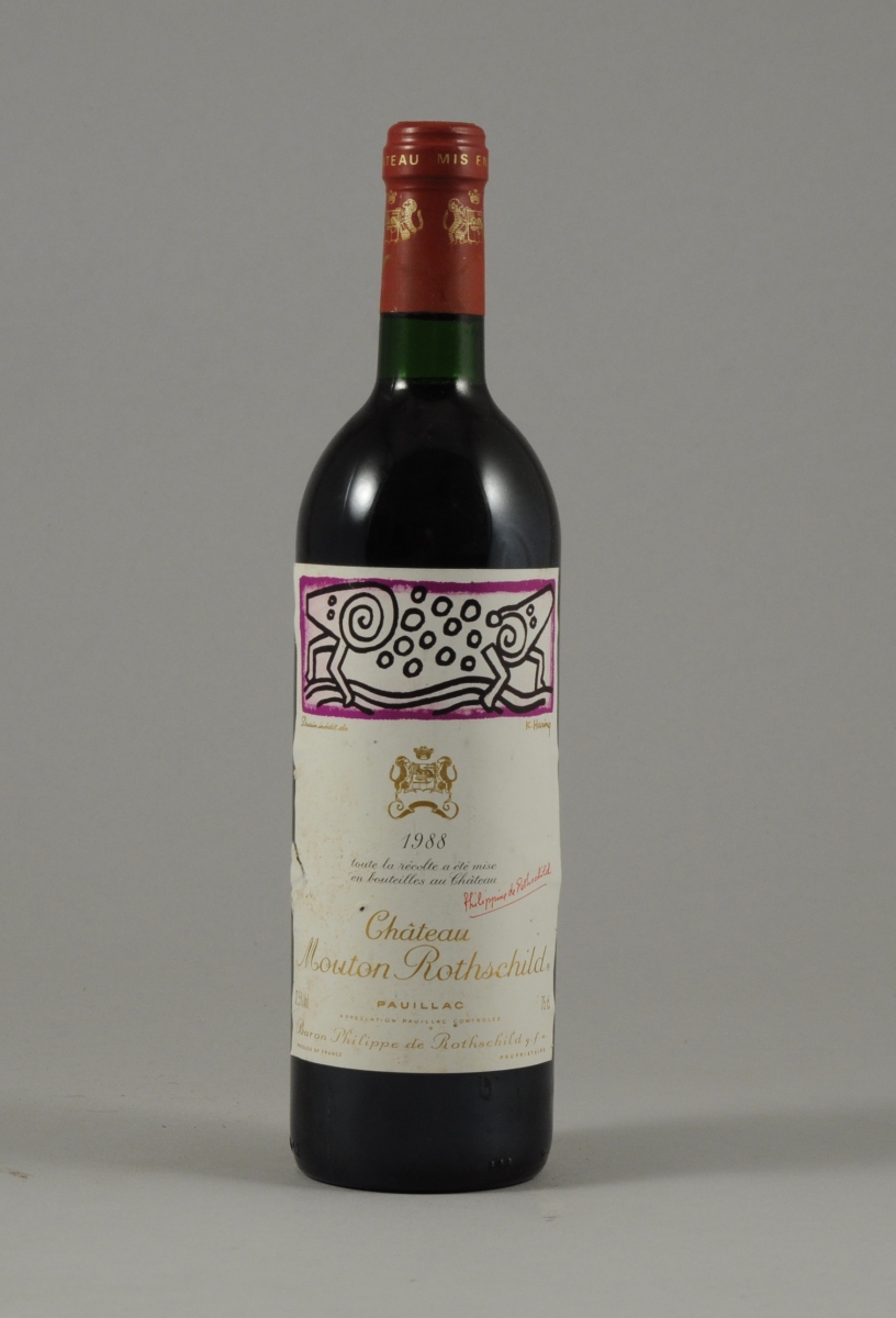 PAUILLAC, Château Mouton Rothshild, 1988. 1 bouteille. Etiquette Keith Haring, peu endommagée.