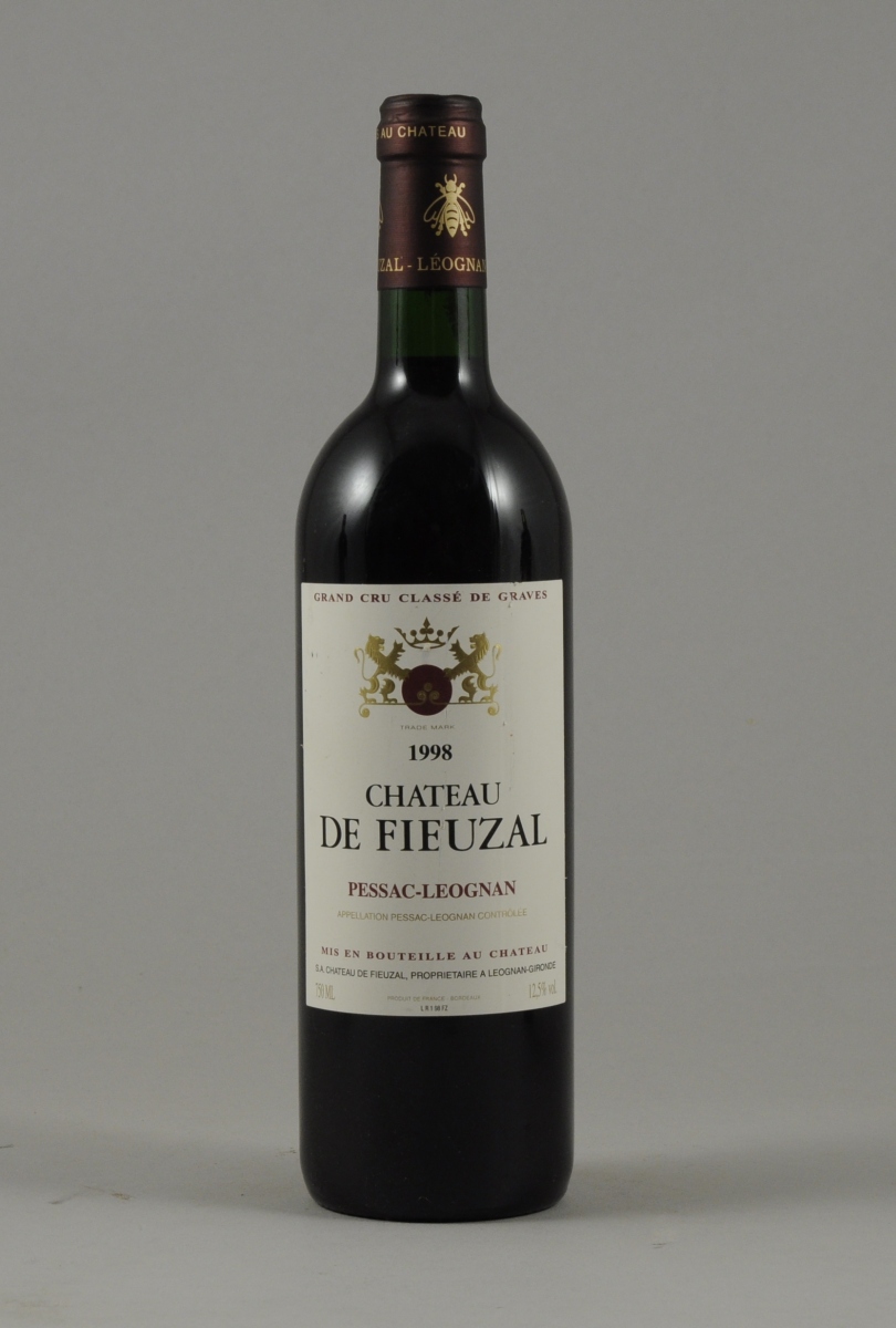 - Château De Fieuzal 2002, 1998. 2 bouteilles Etiquettes en parfait état. Niveaux: 16, 19 mm