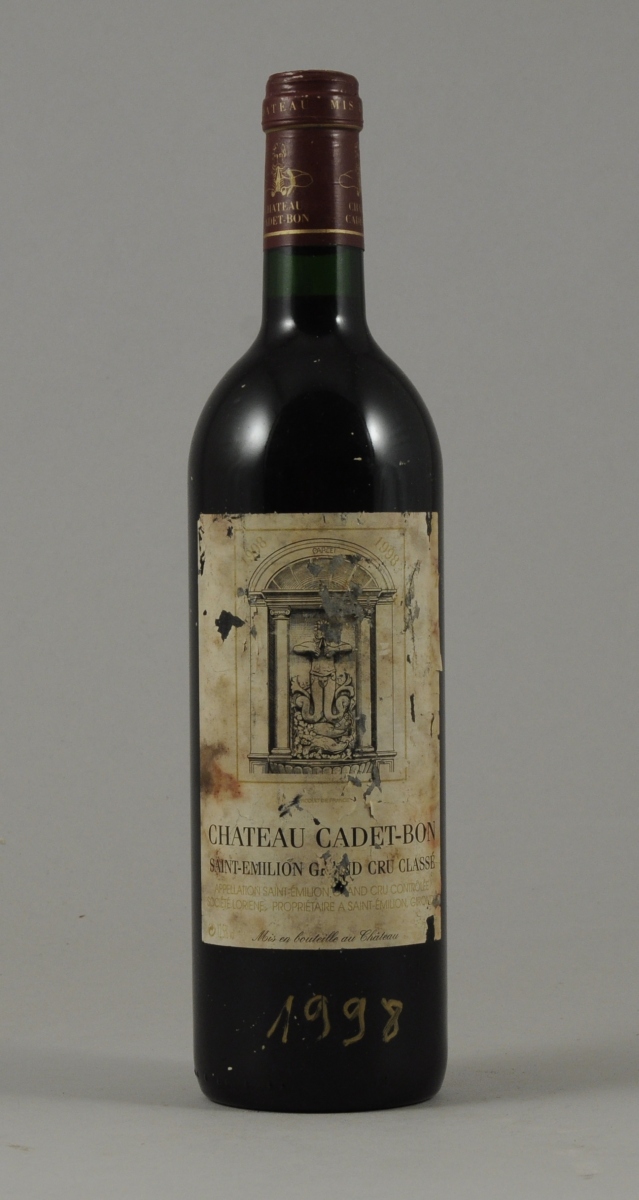SAINT-EMILION, Château Cadet-Bon, 1998. Grand Cru Classé, 9 bouteilles. Etiquettes abimées