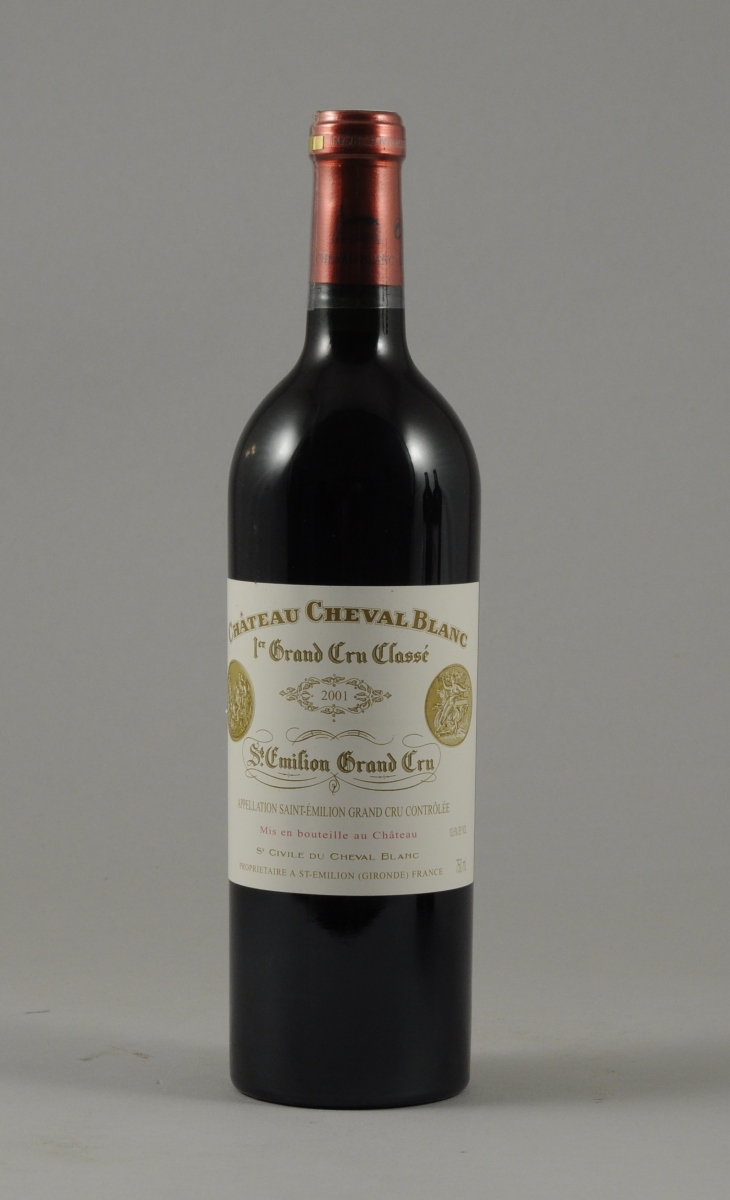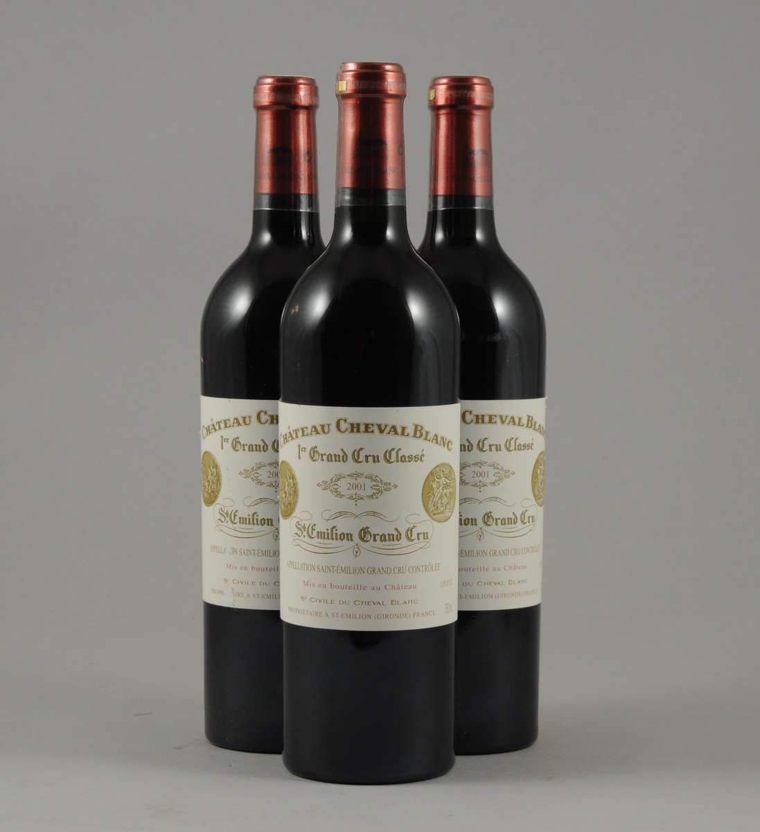 SAINT-EMILION, Château Cheval Blanc 2001. 1er Grand Cru Classé. 3 bouteilles Etiquettes en bon état.
