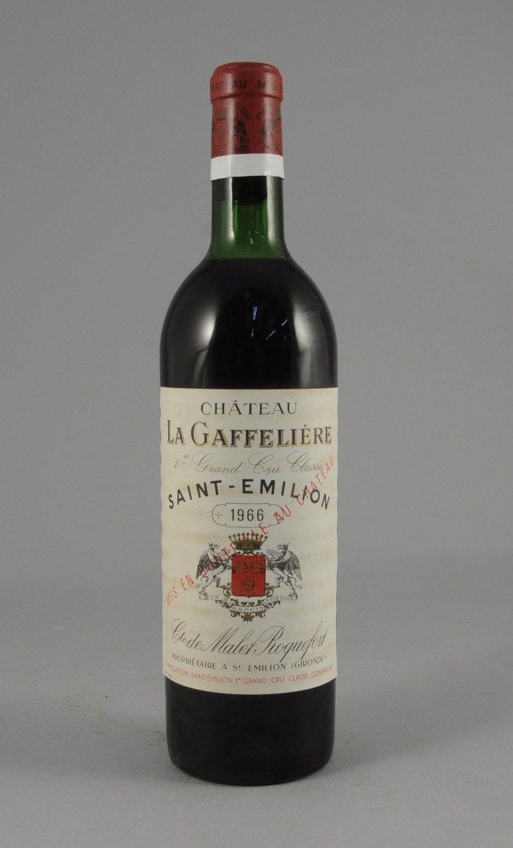 SAINT-EMILION, Château La Gaffelière, 1966. 6 bouteilles, rouge, étiquettes décollées.