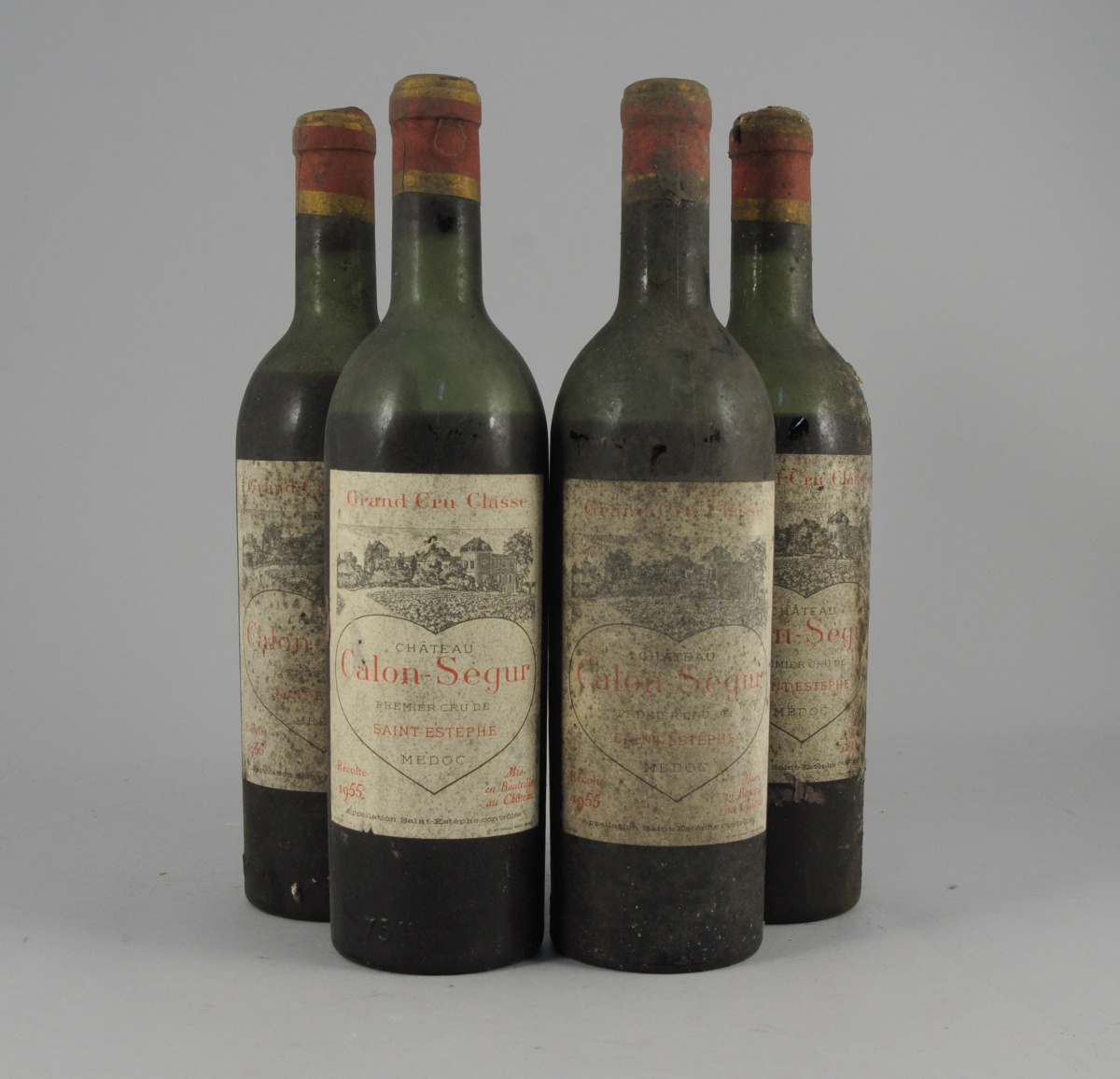 SAINT-ESTÈPHE, Château Calon Ségur, 1955. 4 bouteilles, étiquettes sales et difficilement lisibles.