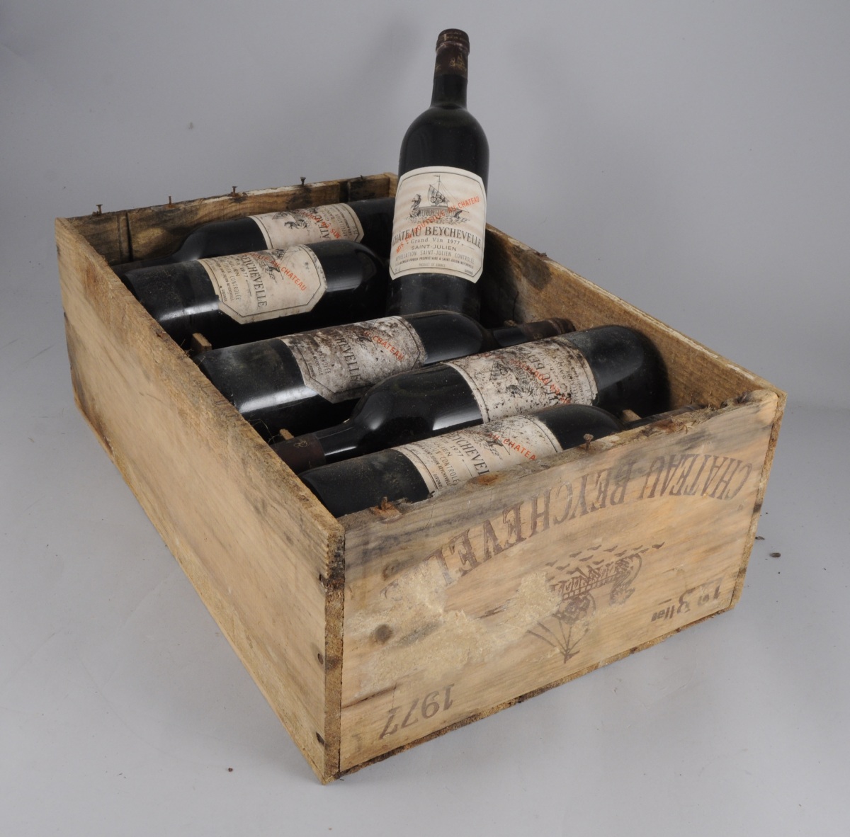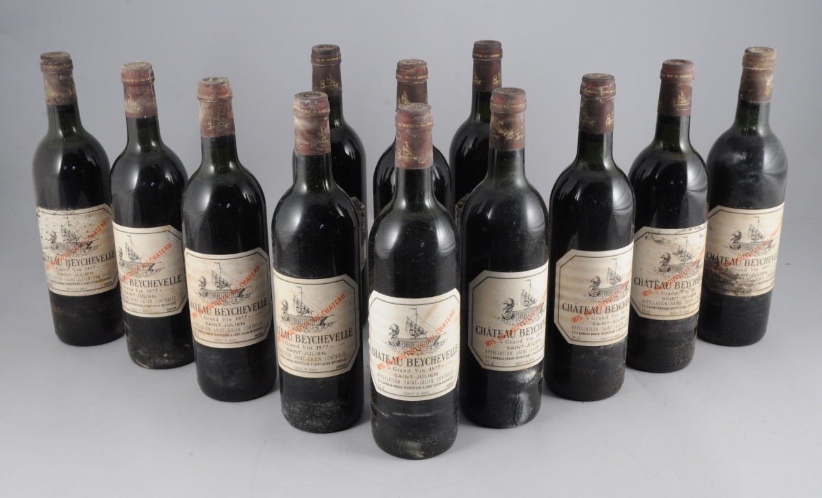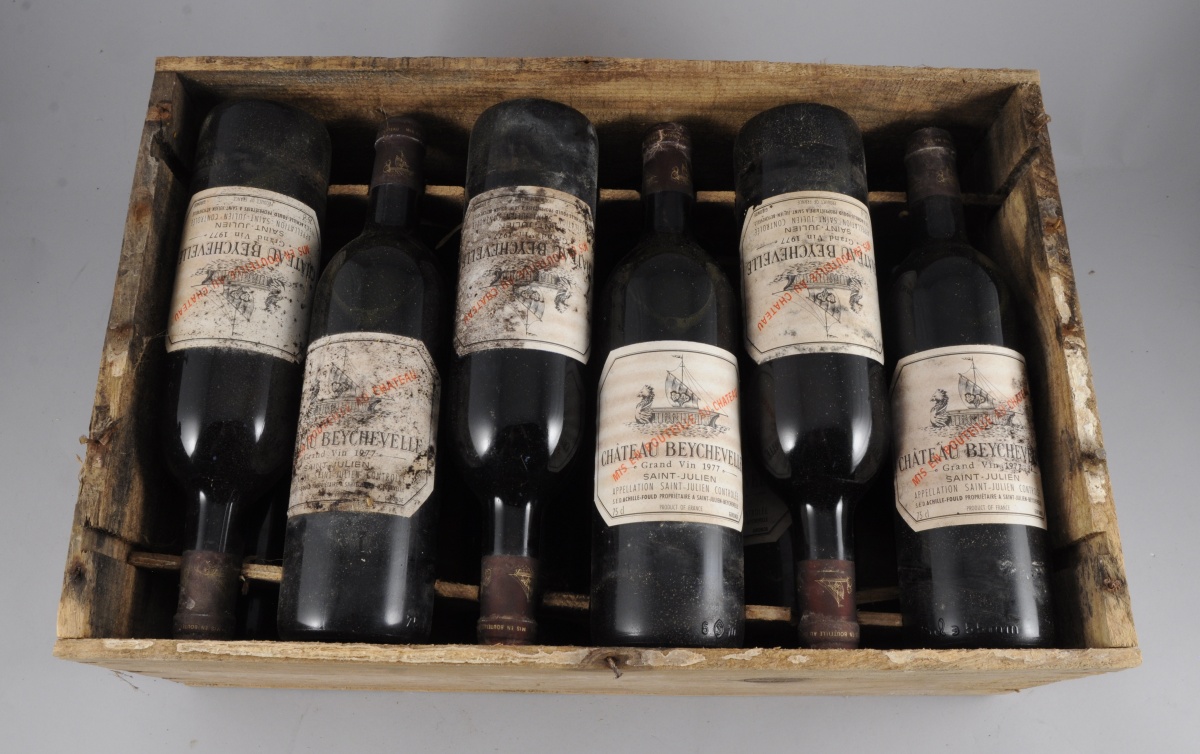 SAINT-JULIEN, Château Beychevelle 1977. 12 bouteilles dans leur caisse en bois.