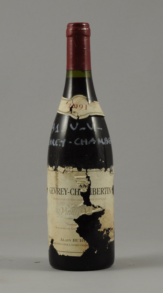 GEVREY-CHAMBERTIN, Vieilles Vignes, 1991. 5 bouteilles, 1992. 1 bouteille. Etiquette très abimées, voir absente.