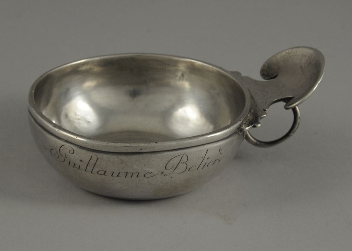 TASSE à VIN en argent, l'anse à appuie pouce découpée.
