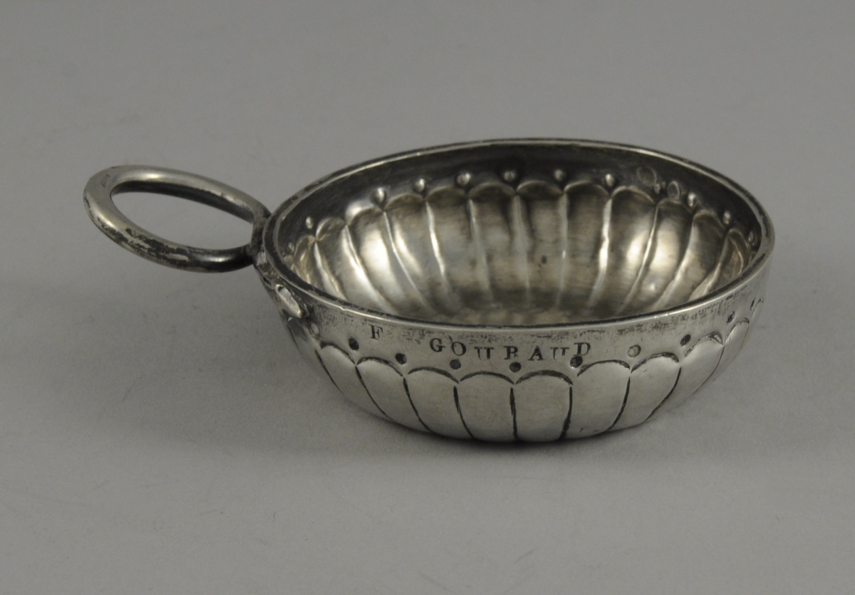 TASSE à VIN en argent à décor de godrons, l'anse serpent enroulé.