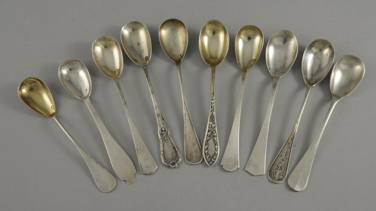 Lot de 9 CUILLÈRES À OEUF en argent. Huit modèles différents.