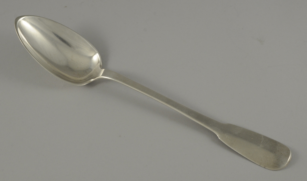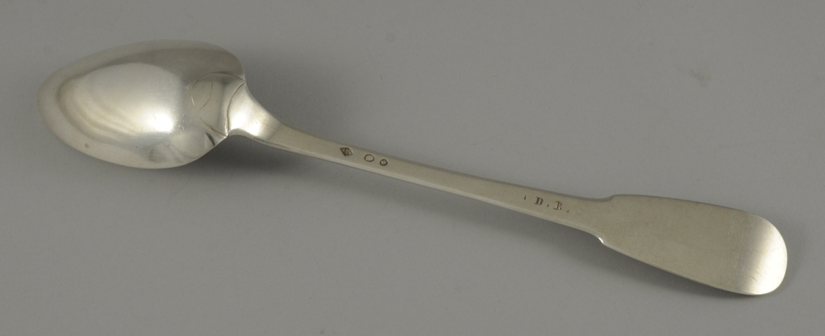 CUILLÈRE À RAGOUT en argent, modèle uniplat. Poinçon deuxième coq, premier titre et moyenne garantie. Travail provincial 1809-1819. Monogrammée "D.B."