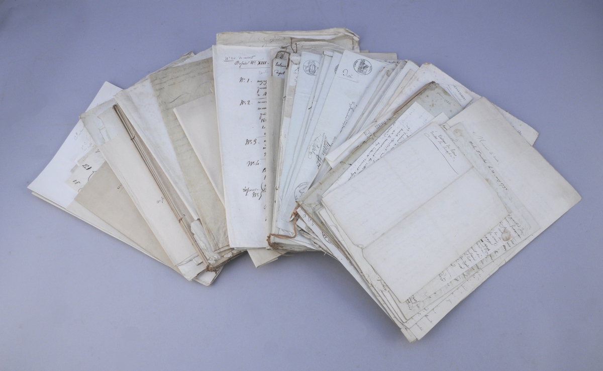 APOLLINAIRE, comte d'ARGOUT. Plus de 150 lettres ou pièces, XVIIe-XIXe siècle, la plupart classées dans des dossiers constitués et annotés par le comte d'Argout.