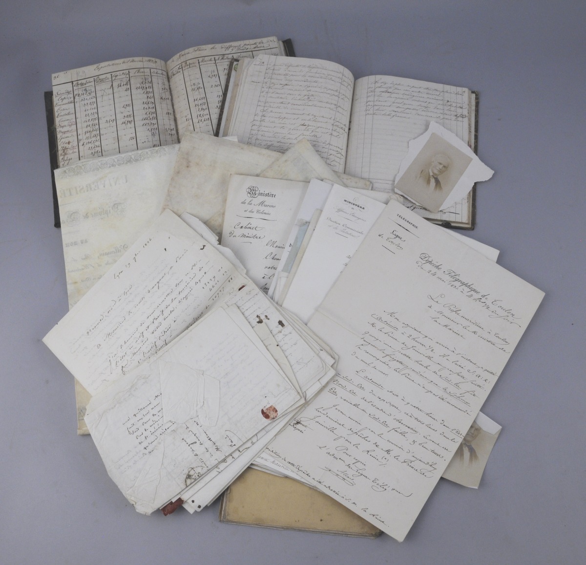 - 19 lettres ou pièces relatives à SA CARRIERE. L'amiral de RIGNY, ministre de la Marine et des Colonies, annonce au comte d'Argout que Maurice sera embarqué comme mousse sur la Didon, pendant le voyage du prince de Joinville (1831). Diplômes de bachelier ès-lettres (1837) et en droit (1839), licencié en droit (1842). Lettres à propos de son étude sur Java en 1842, par H. FERET, H. GALOS, GUIZOT, A. d'IVANOFF, MARTIN du Nord, MONTALIVET, le marquis de VERAC, etc. Avis de sa nomination à la Légion d'honneur, signés par FOULD et EXELMANS (1851). Mémoire a.s. sur son titre de noblesse (1860). État de services avec ajouts autogr. (vers 1864). Note autogr. sur l'île de Mindanao.