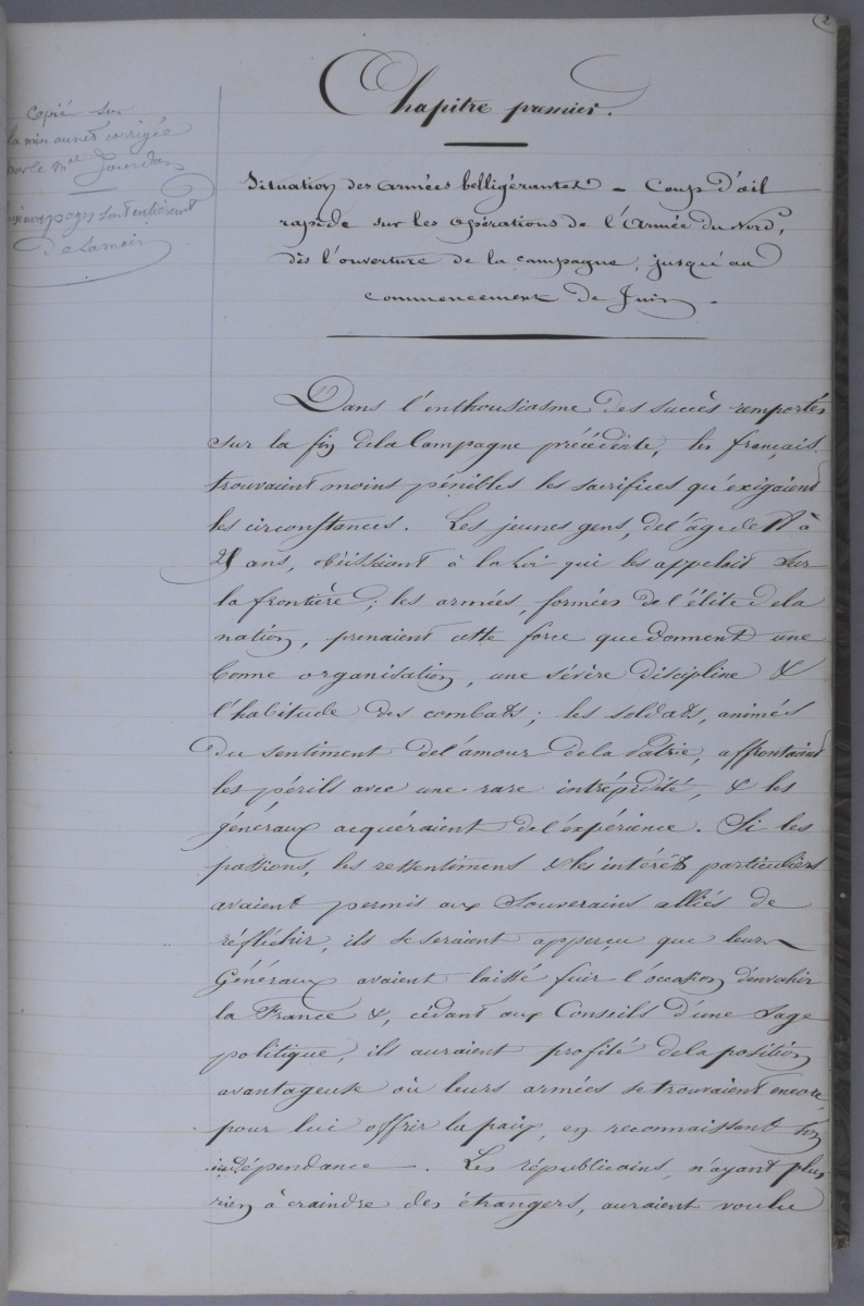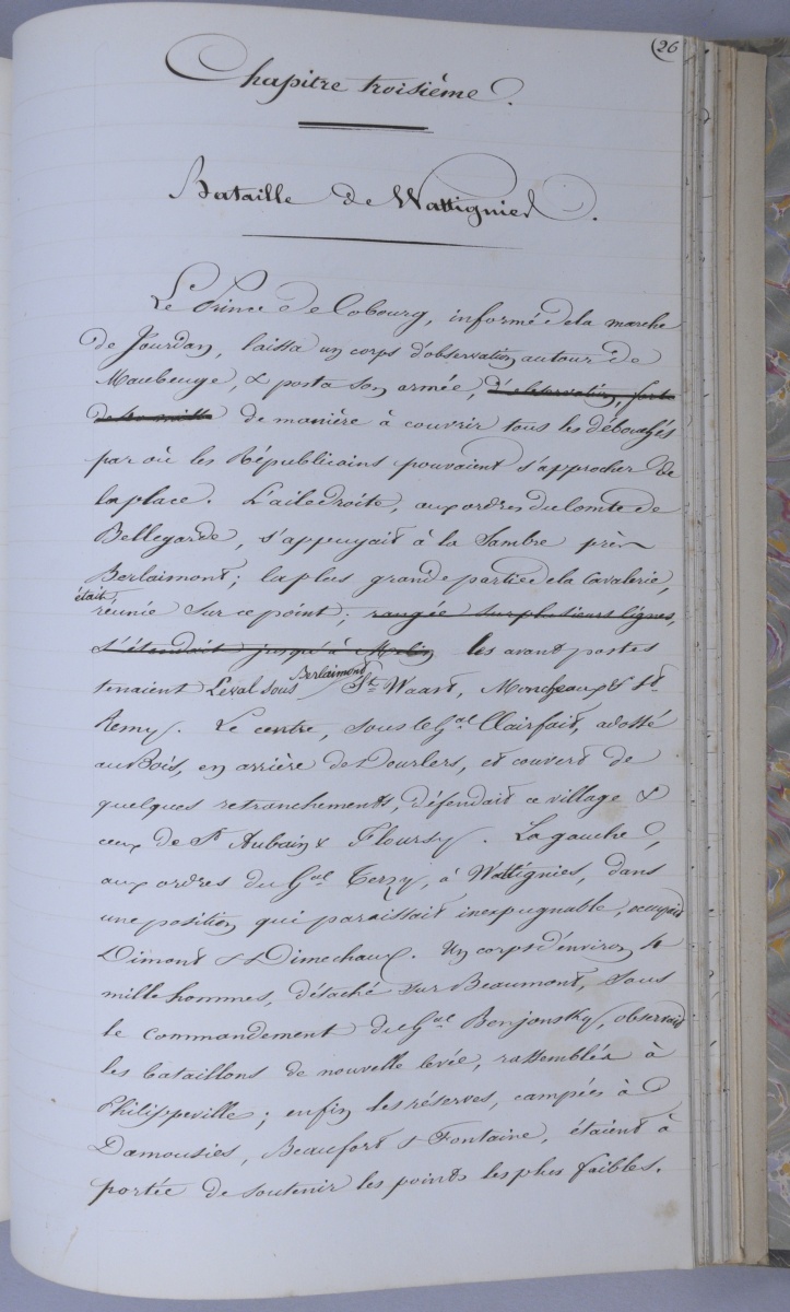 On a relié à la suite de cette correspondance une copie tardive du manuscrit des Mémoires militaires du maréchal Jourdan (Guerre d'Espagne) [publiés en 1899 par le vicomte de Grouchy].