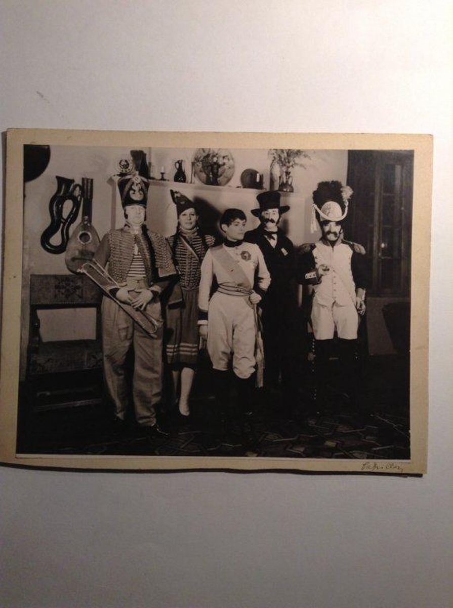 -2 photographies (230 X 165 et 218 X 273 mm) sur carton fort, signées Papillon, avec cachet au dos. La première, datée de 1935, représente Derain seul, posant en Roi Soleil. Sur la seconde, il est costumé en officier d'Empire, accompagné d'Alice Derain en Duc de Reichstadt, et de Juliette Bompard, Pierre Bompard (peintre de marine), et Pierre Devaux (caricaturiste).