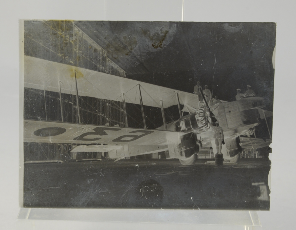 ENSEMBLE DE NÉGATIFS VERRE AYANT TRAIT À L'AVIATION DANS LES ANNÉES 1925-1935: 51 plaques d'avions (dont 7 cassées), 19 plaques sur la vie militaires liée l'aviation (?).