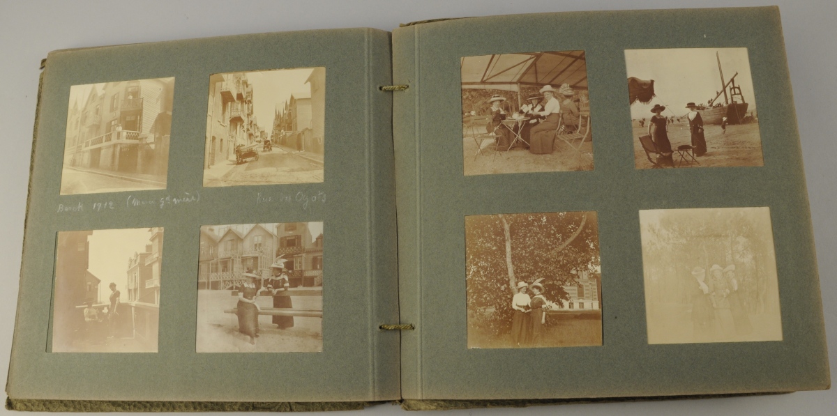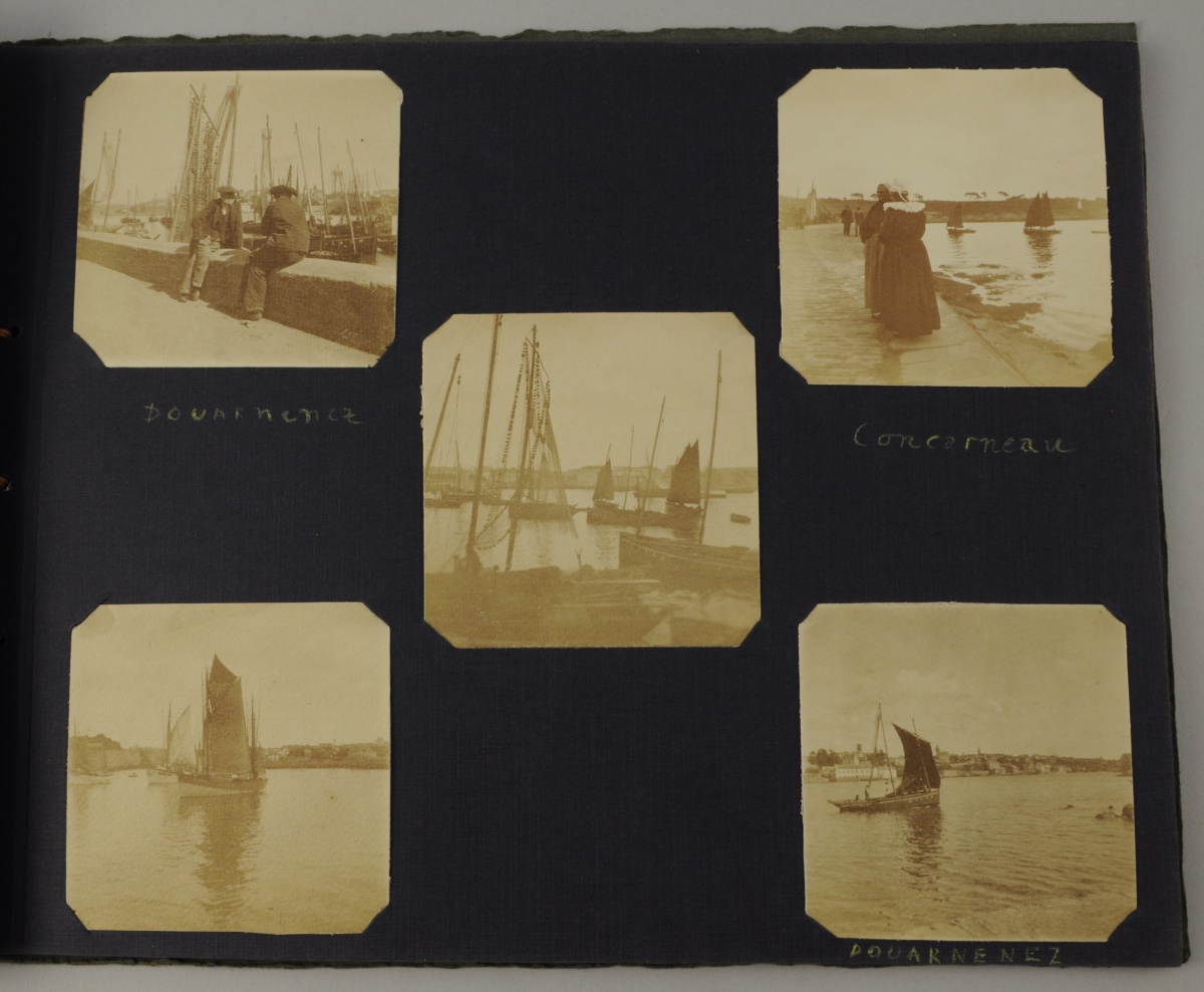 DEUX ALBUMS d'environ 120 tirages photographiques dont Douarnenez, Dinard, Saint-Malo, bords de Loire, Berck et autres. 1910-1920. La plupart, 8 x 8 cm. (usures, insolés)