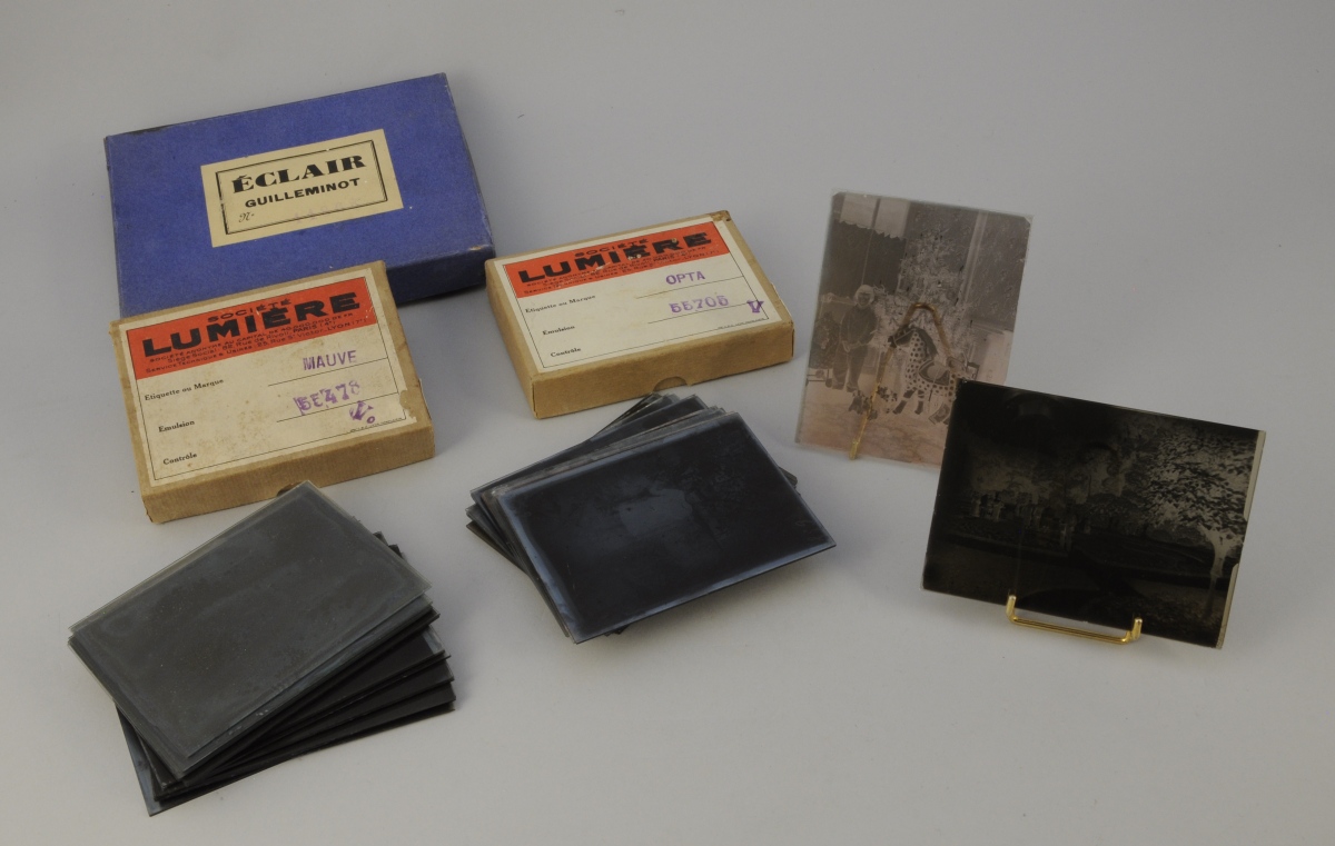 33 plaques photographiques dans trois boites. XXème. 12 x 9 cm. (usures)