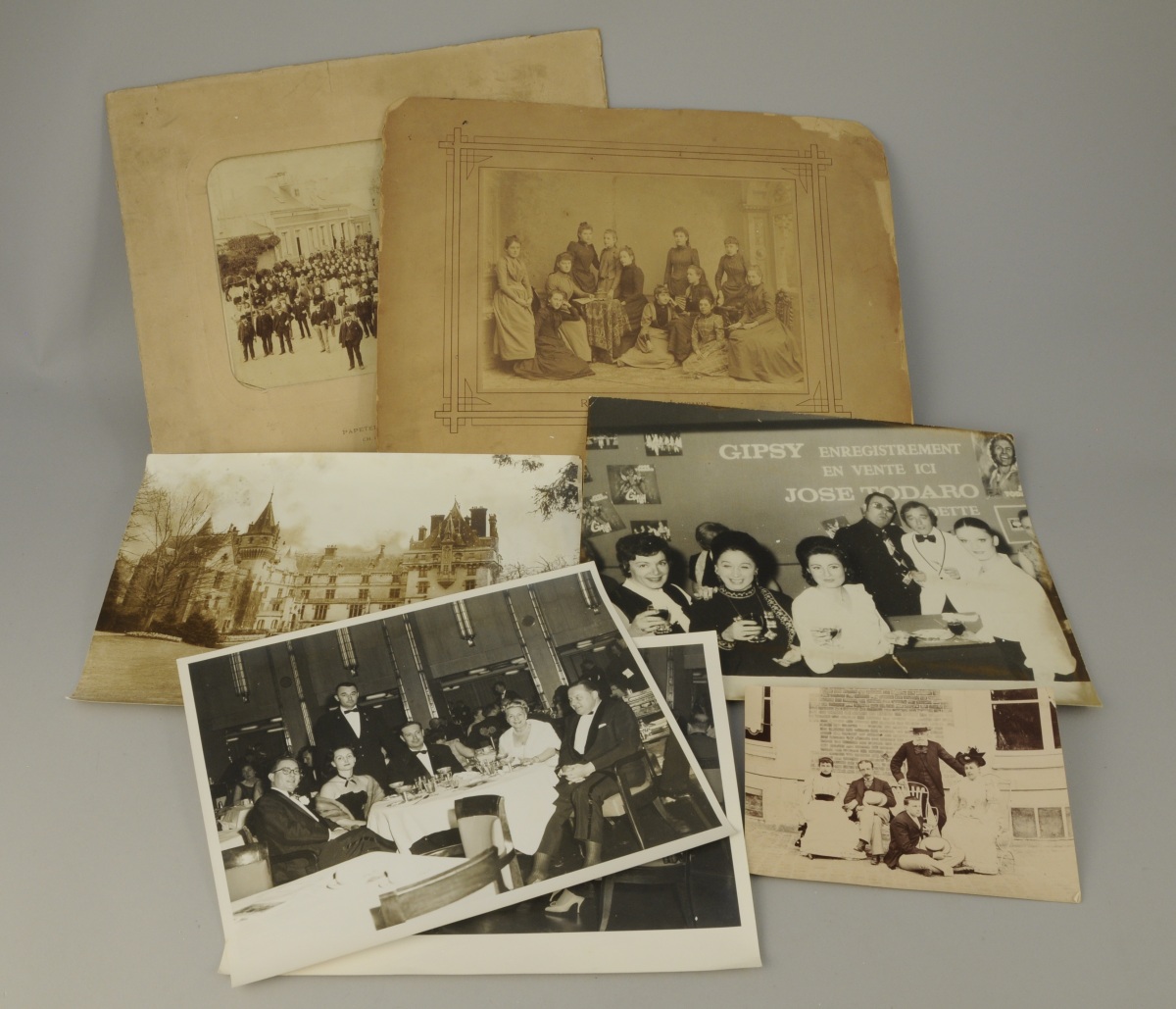 - FAMILLE (soirées mondaines, mariage et divers). 9 tirages photographiques. La plupart années 1960. La plus grande, 24 x 30 cm. (décolorations, usures)