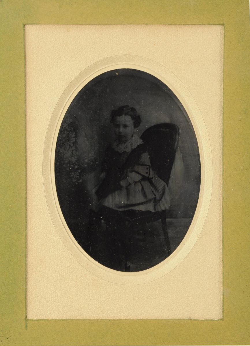 - CONTRETYPE. PORTRAIT d'enfant. Dans un cadre en bois peint. Vers 1840. Format ovale, Haut. 11,5 cm.