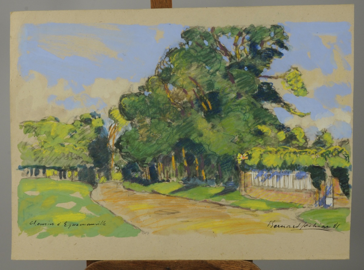 Pastel et gouache, signée en bas à droite et titrée en bas à gauche.