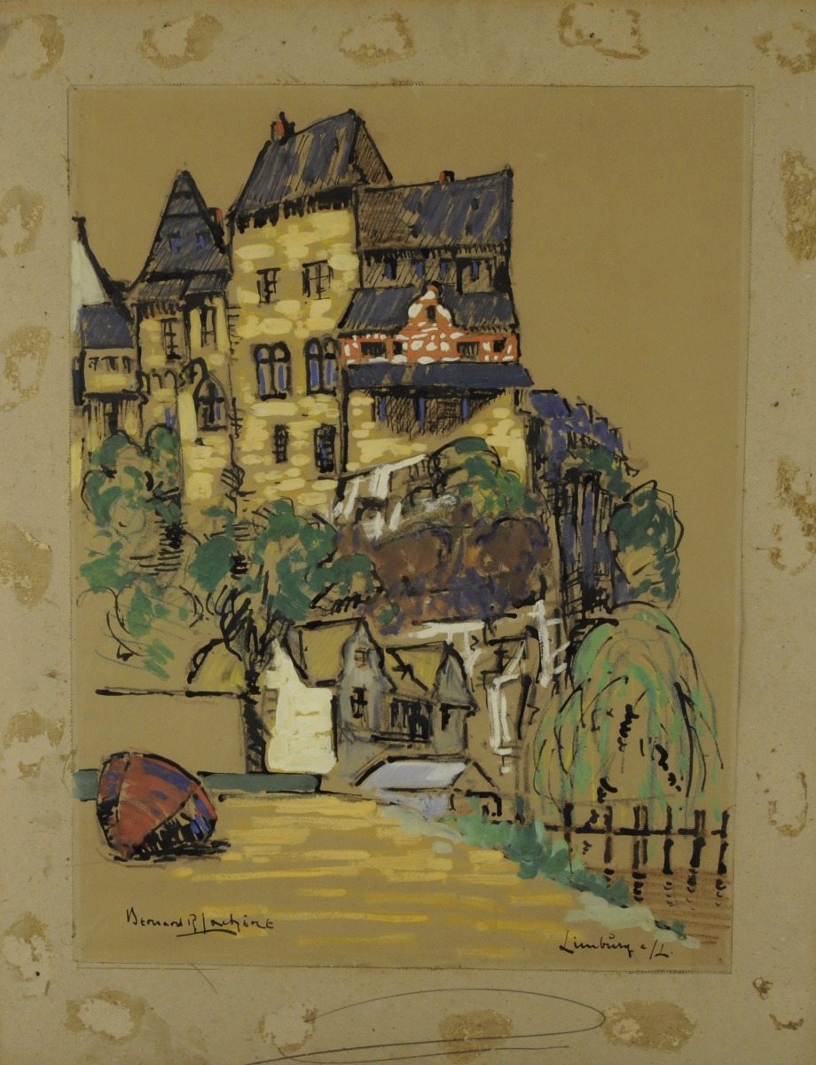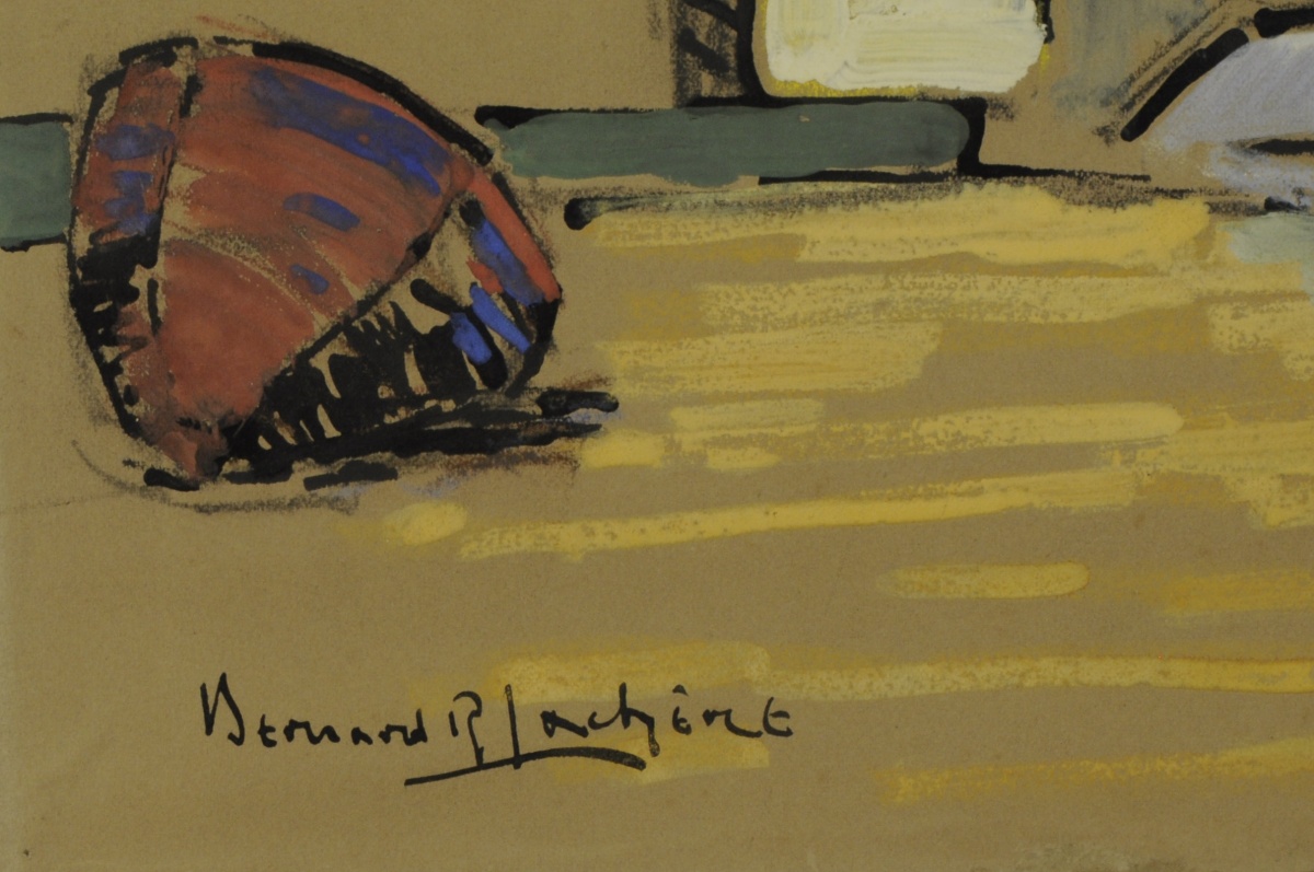 Gouache et pastel marouflé sur carton, signée en bas à gauche et titrée en bas à droite. Porte une inscription au pastel au dos " Bernard Lachèvre / [