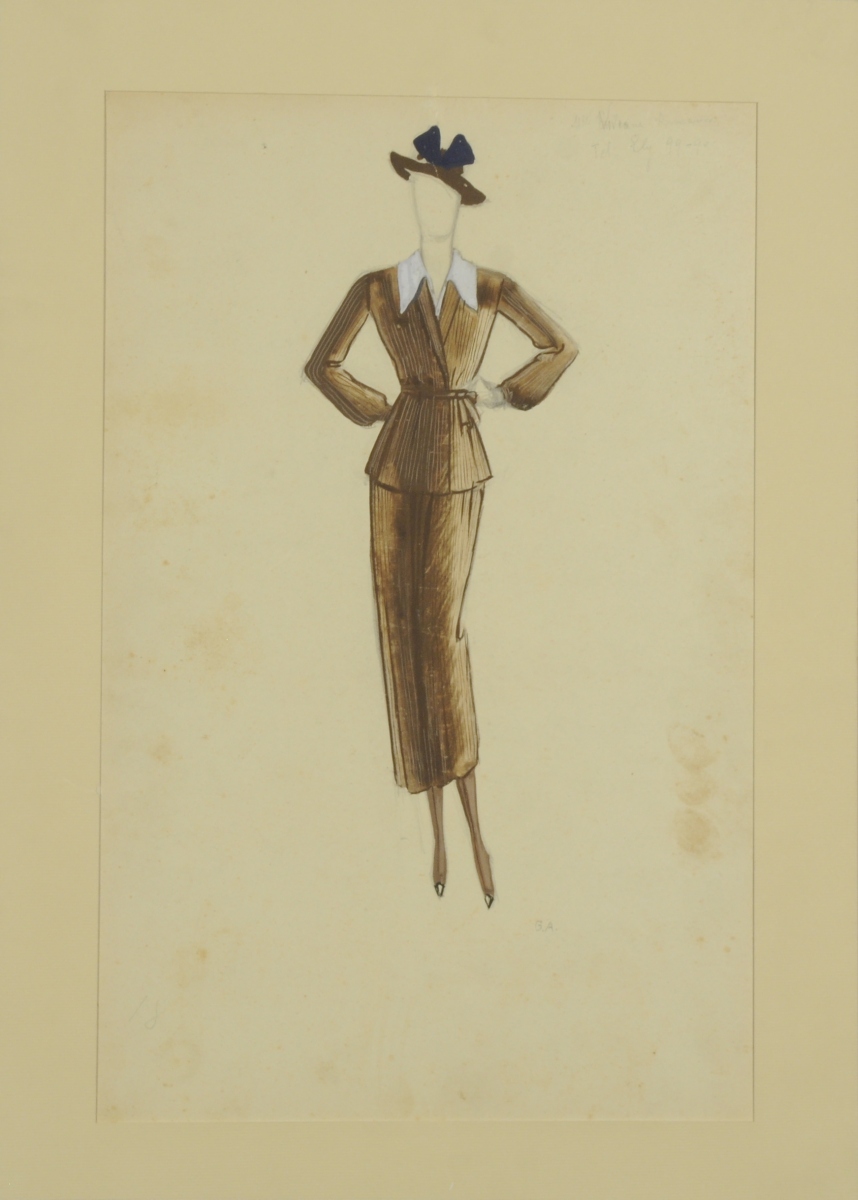 Crayon et gouache, monogrammé en bas à droite et numéroté 18 en bas à gauche. Porte l'inscription "Melle Viviane Romance / Tel: Ely 99-90." en haut à droite.
