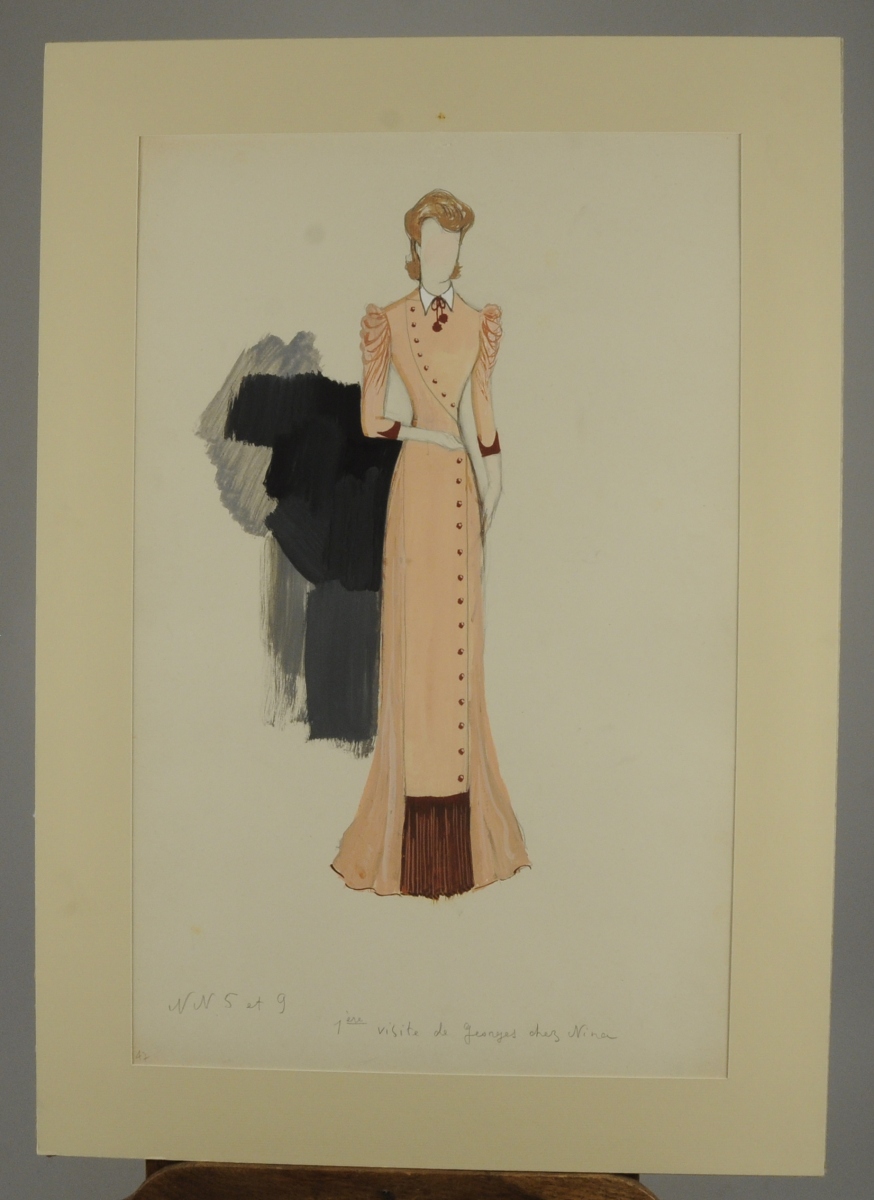 Crayon et gouache, monogrammé en bas à droite, numéroté 47 et annoté "NN 5 et 9 / 1ère visite de Georges chez Nina".