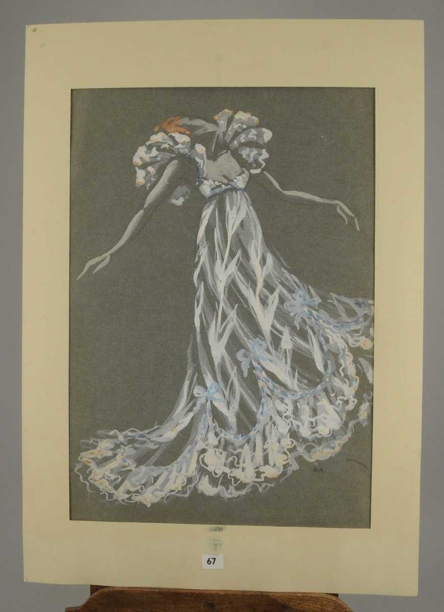 Crayon, aquarelle et gouache, monogrammé en bas à droite.